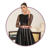 Net Embroidered FrockNet DupattaRawSilk Sharara The net embroidered frock paired with raw silk flared trousers and a net embroidered dupatta must be a head-turner. The mix of textures and intricate embroidery details is sure to make you stand out in any event.- from $ 186.70