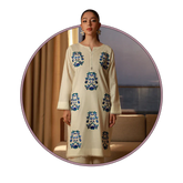 A luminous composition inspired by festive opulence. The dark aquamarine shirt is elevated with intricate threadwork and delicate boring techniques, forming floral and natural motifs that feel richly detailed yet perfectly balanced. Accompanied by a tonal printed chiffon dupatta, this ensemble embodies sophisticated elegance...- $ 40.92