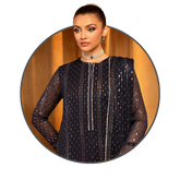 Shirt Front: Sequins Embroidered Chiffon Center Panel Sequins Embroidered Chiffon Right Panel Sequins Embroidered Chiffon Left Panel Shirt Back: Sequins Embroidered Chiffon Shirt Sleeves: Sequins Embroidered Chiffon Dupatta: Sequins Embroidered Chiffon Laces: Sequins Embroidered Daman Lace Sequins Embroidered Sleeves Lace Sequins Embroidered Pallu Lace...- $ 47.62