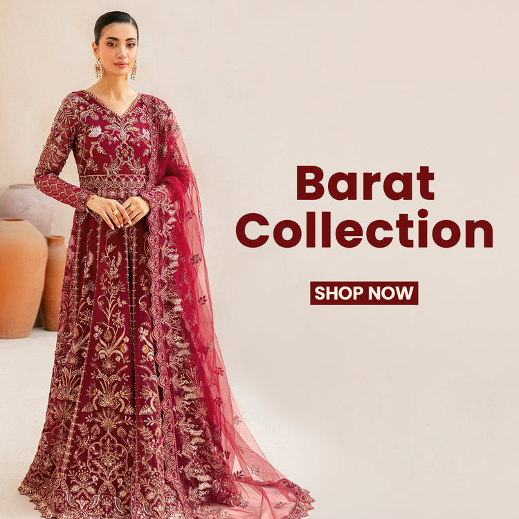 Our Barat dresses for women honor the richness of Pakistani wedding traditions while embracing the tastes of modern brides across the world. Expect rich hues, reds, maroons, golds, deep greens, paired with intricate handwork, layered textures, and couture-level finishes that translate beautifully across cultures and continents.