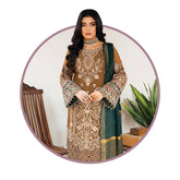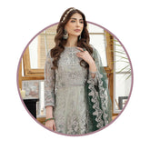 Embroidered Chiffon Front Plain Chiffon Back Embroidered Chiffon Sleeves Embroidered Chiffon Dupatta Embroidered Organza Border for Front Embroidered Organza Border for Sleeves Embroidered Organza Border for Back Embroidered Organza Border for Trouser- $ 53.54