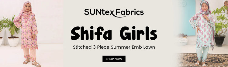 Shomi is an ideal platform for those parents who want to keep their little one's fashion on point on all occasions. Our outstanding online portal brings you a huge collection from Suntex Fabrics that caters to your little girl's fashion needs. From this essential lawn collection to 3-piece stitched embroidered suits, you’ll find all the exclusive releases of Suntex Fabrics on our platform. Browse our website and buy your favorites securely. Our ultra-fast deliveries ensure you receive your outfit in no time. Besides the latest collections, you can also find kids' clothes sale in our discounted categories. So, why head out to shopping malls when Shomi brings the Suntex magic to your doorstep?