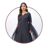 · Fabric: Premium Viscose (Shirt & Trousers), Taar Kashi (Dupatta) · Style: Straight-cut shirt with embellished trousers · Color: Classic Black with Multicolor Embroidery · Includes: Embroidered Shirt, Embellished Trousers, Printed Dupatta Disclaimer: Product color may slightly vary due to photographic lighting sources or your...- $ 52.32