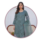 Threads & Weaves Pastel Sea Green Solid 3-Piece Ready-to-Wear Suit with Embroidered Dupatta & Trouser