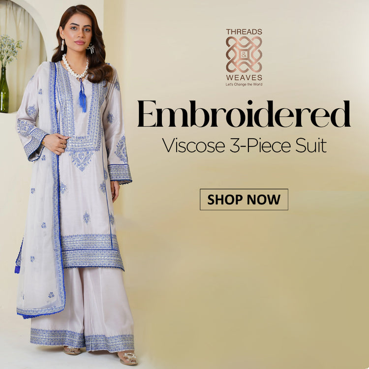 Threads & Weaves Elegant Teal Blue Embroidered Lawn 3-Piece Suit