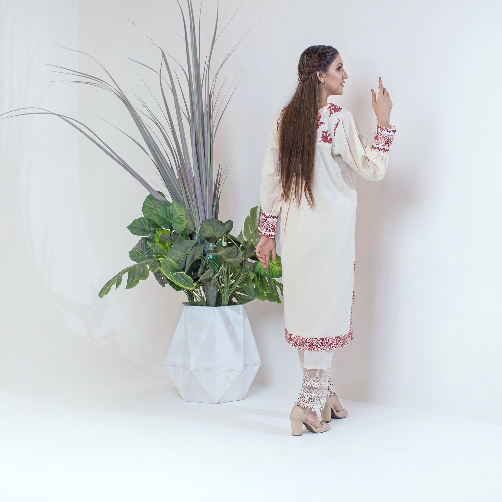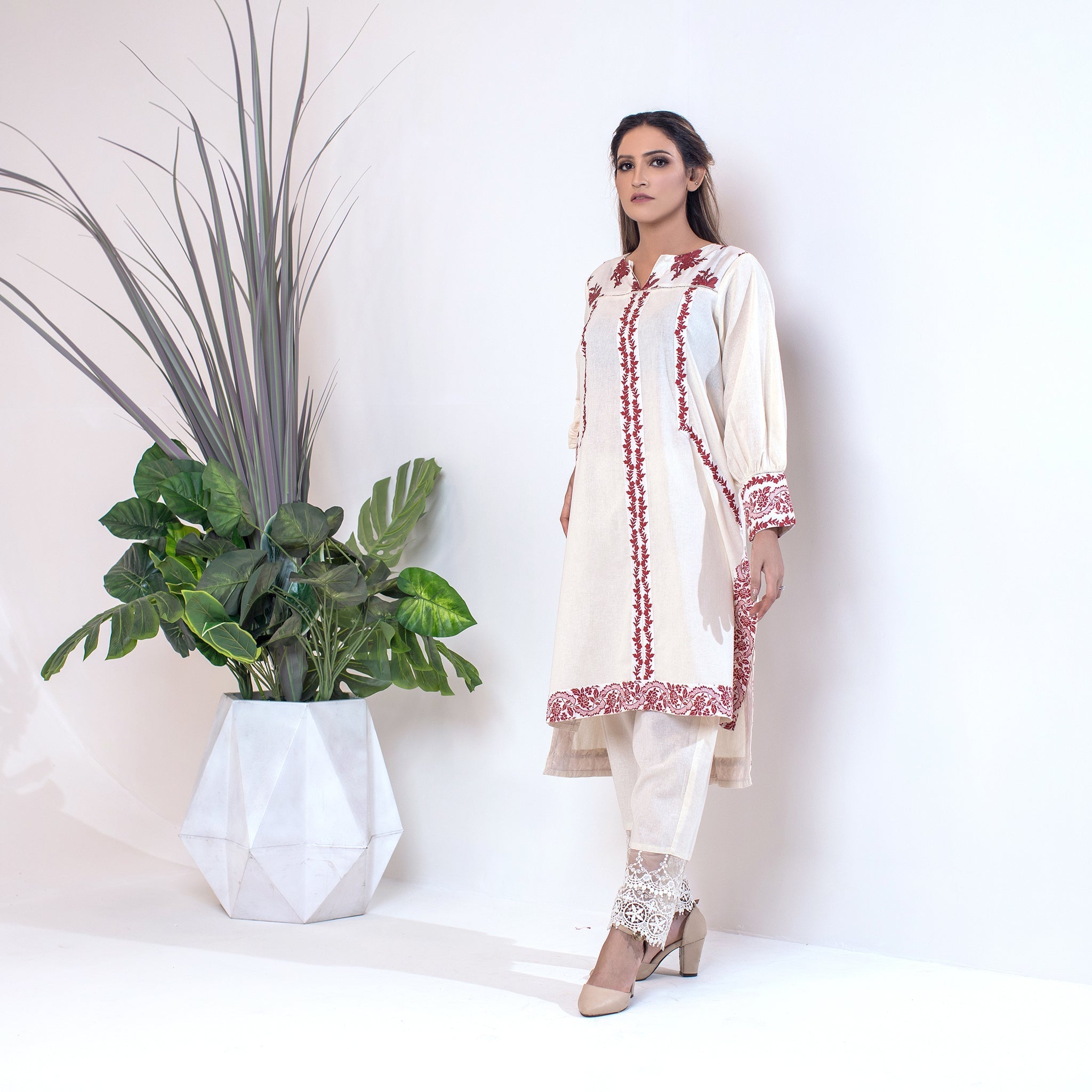 Printed Patch work motifs as band Motifs attached to Neck/Body/Cuff/Daman/Sides. Ruffled sleeves and Long Back