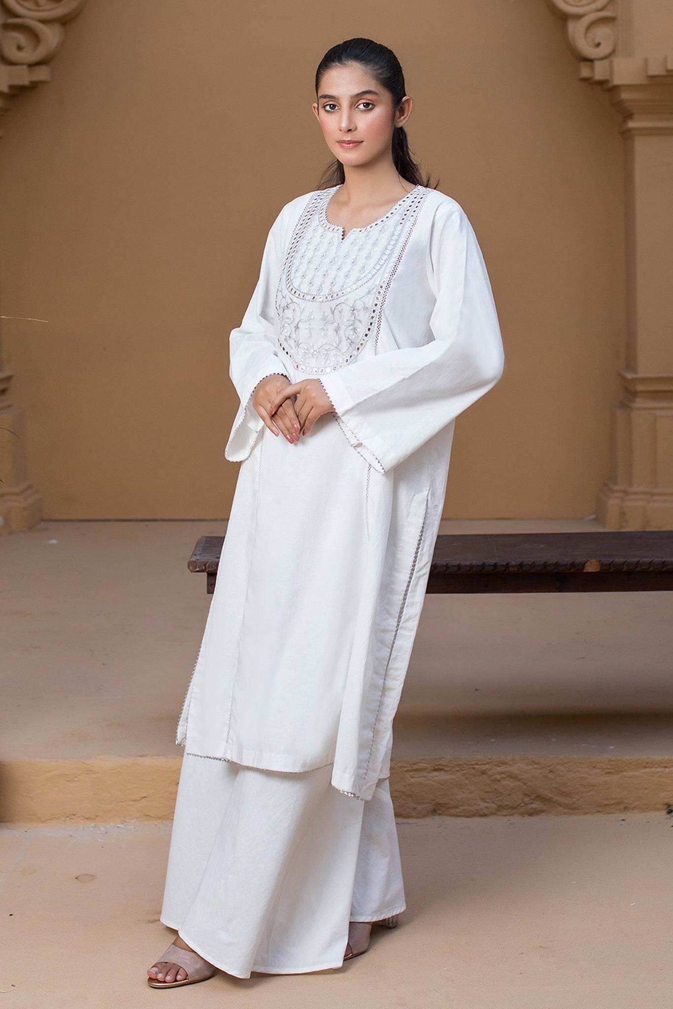 The intricate embroidery work with 9 mm sequence and zari patterns evoke a sense of grace and elegance. Experience comfort and style with lace work at daman/body and Neck on high-quality cotton fabric. This dress features an intricate 9 mm seqeunce that resembles with mirror work. Perfect for any casual or event occasion, elevate your wardrobe with this must-have piece. Back Longer than front length , 13 Punched Fabric wrapped buttons, 28 PleatsĀ 100% Cotton / Gentle Wash , Cool Iron |