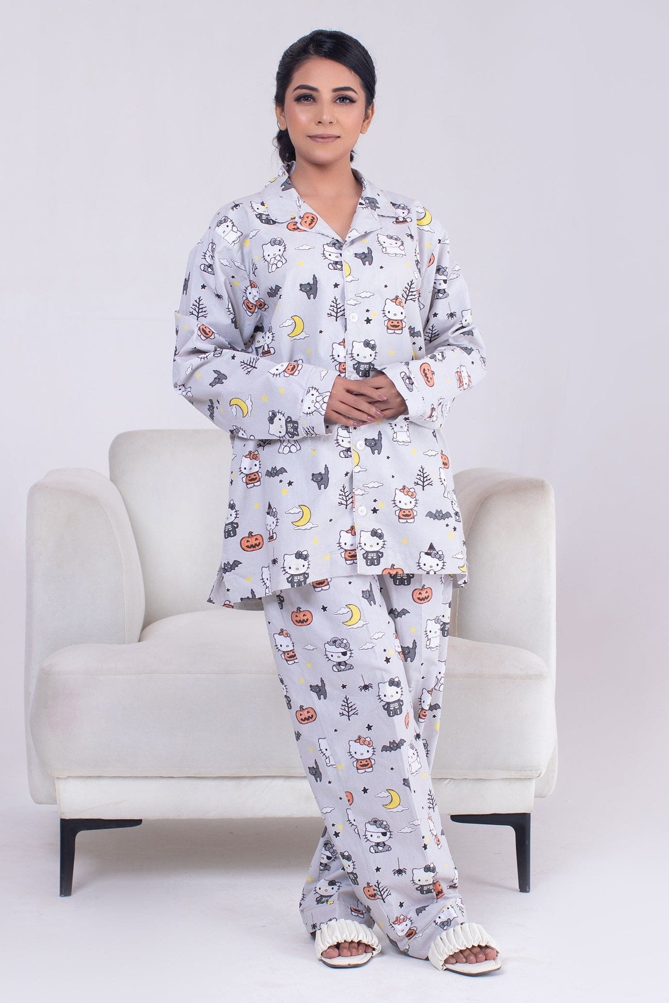 Introducing our Two-Piece Hello Kitty Desing of Cotton Glow in Dark Pajama Sets.