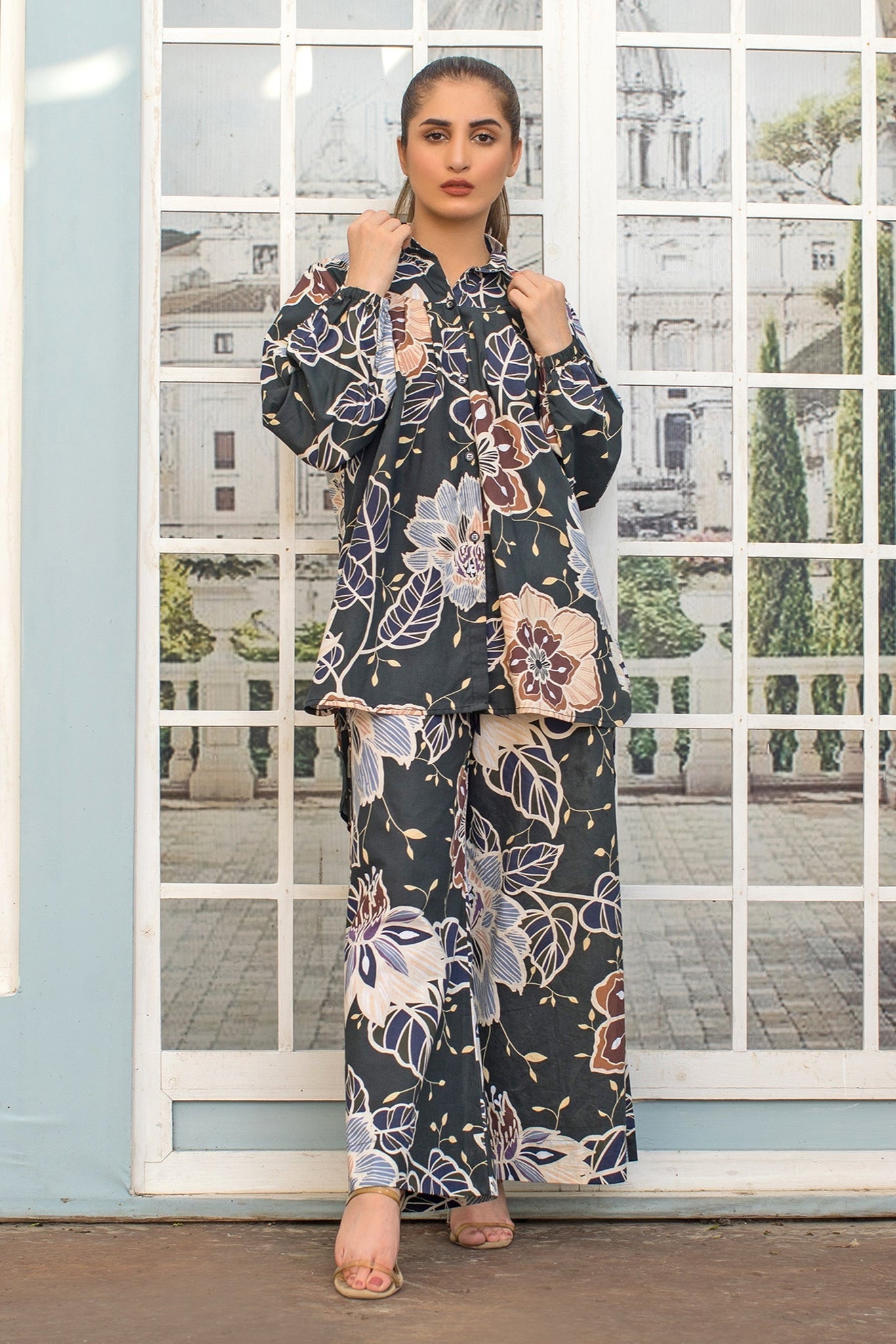 Floral Co Ord Set, features a stunning print design on the front and long back. The top ruffled York / Collar and Ruffled sleeves are perfect for casual style. Elevate your look and stand out in this must-have set! |