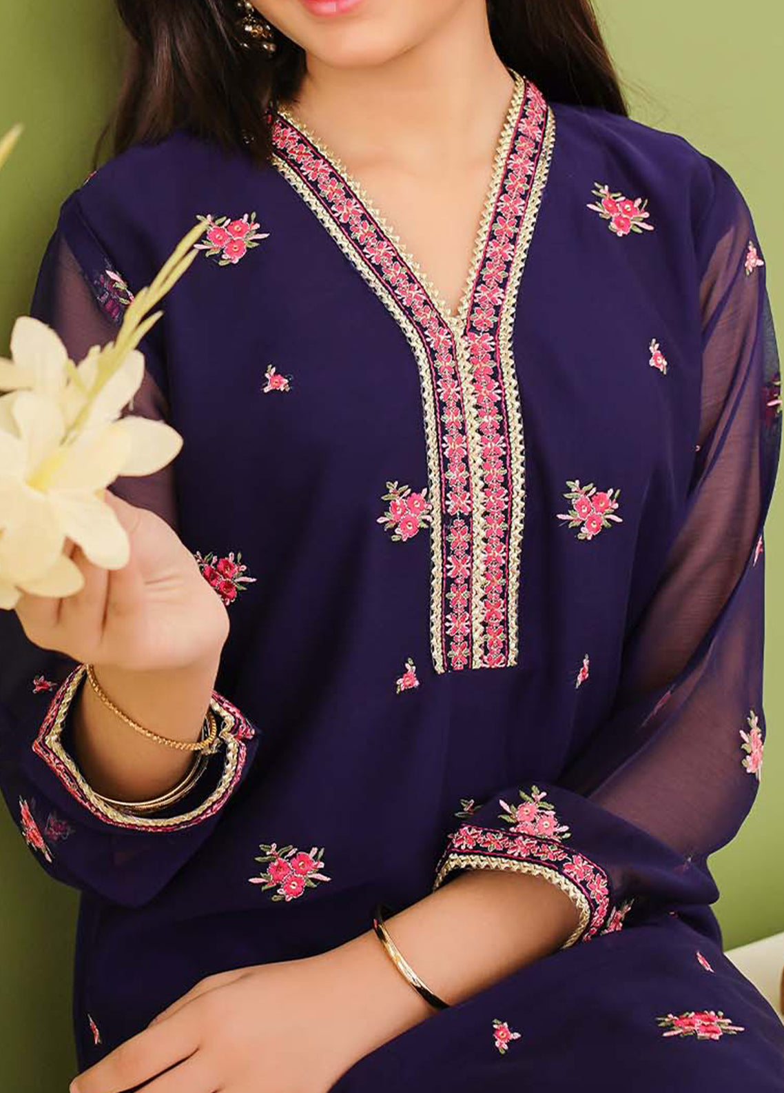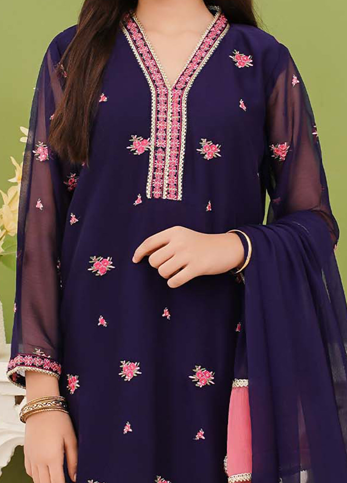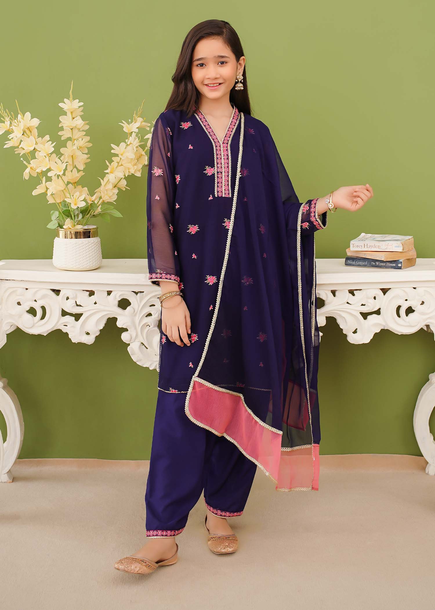 Modest Stitched 3 Piece Festive Edit Vol-02 Collection'2025-Embroidered Blue Chiffon Suit
