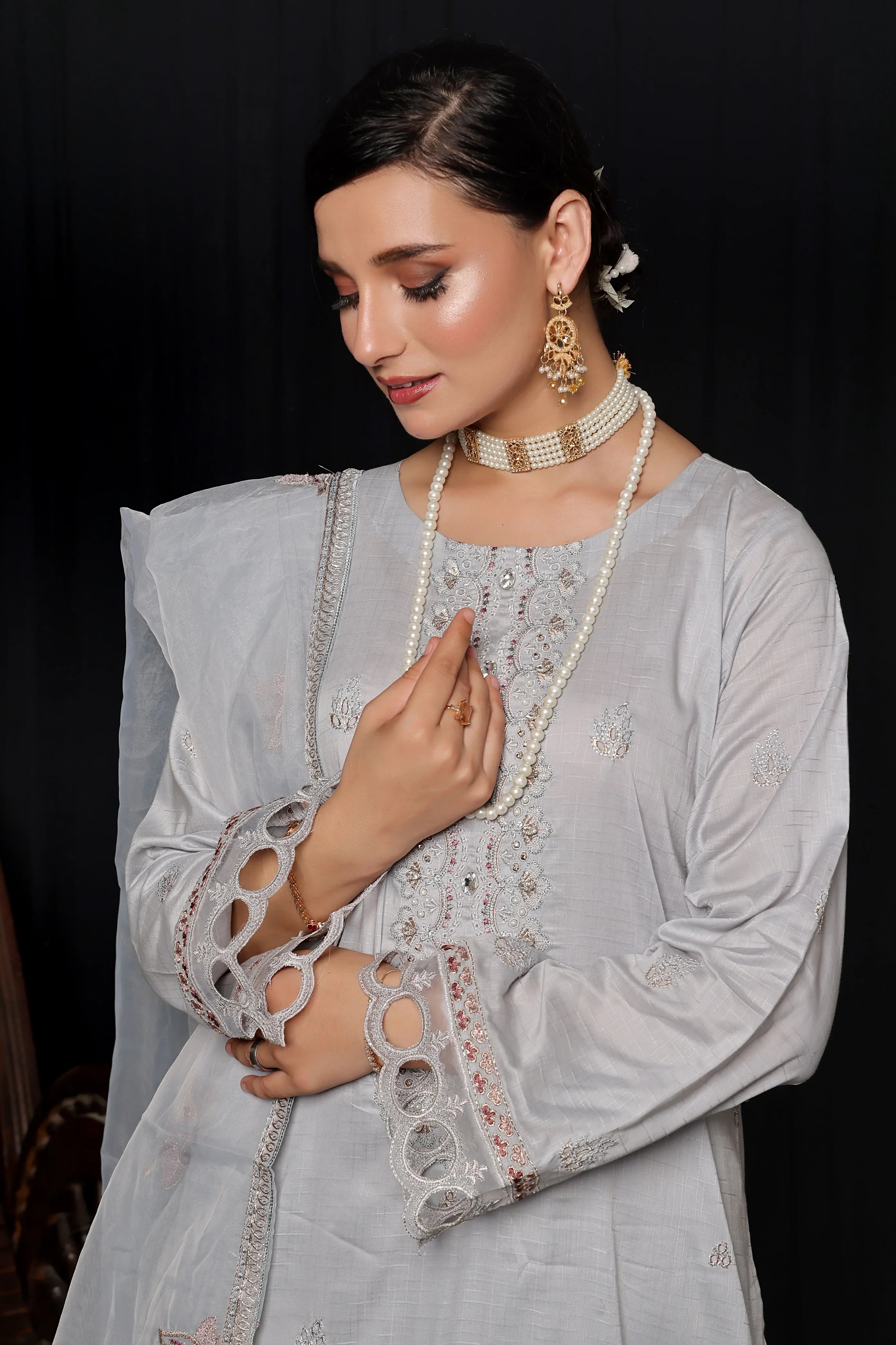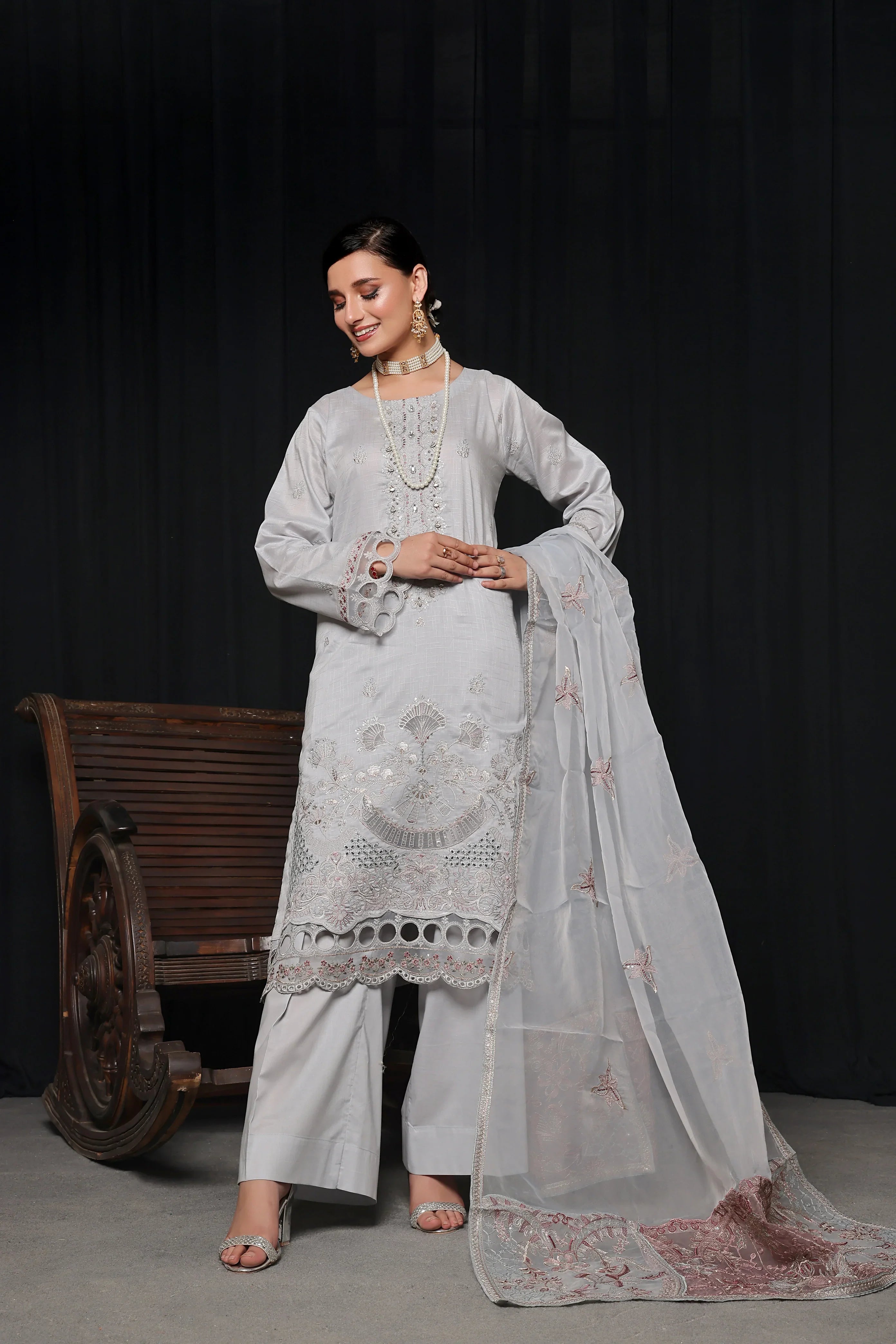 This luxurious Dupatta features intricate embroidery with the precision of Laserkari and the artistry of Chikankari. Made with the finest materials, it adds elegance and sophistication to any outfit. Perfect for formal events or to elevate your everyday style.