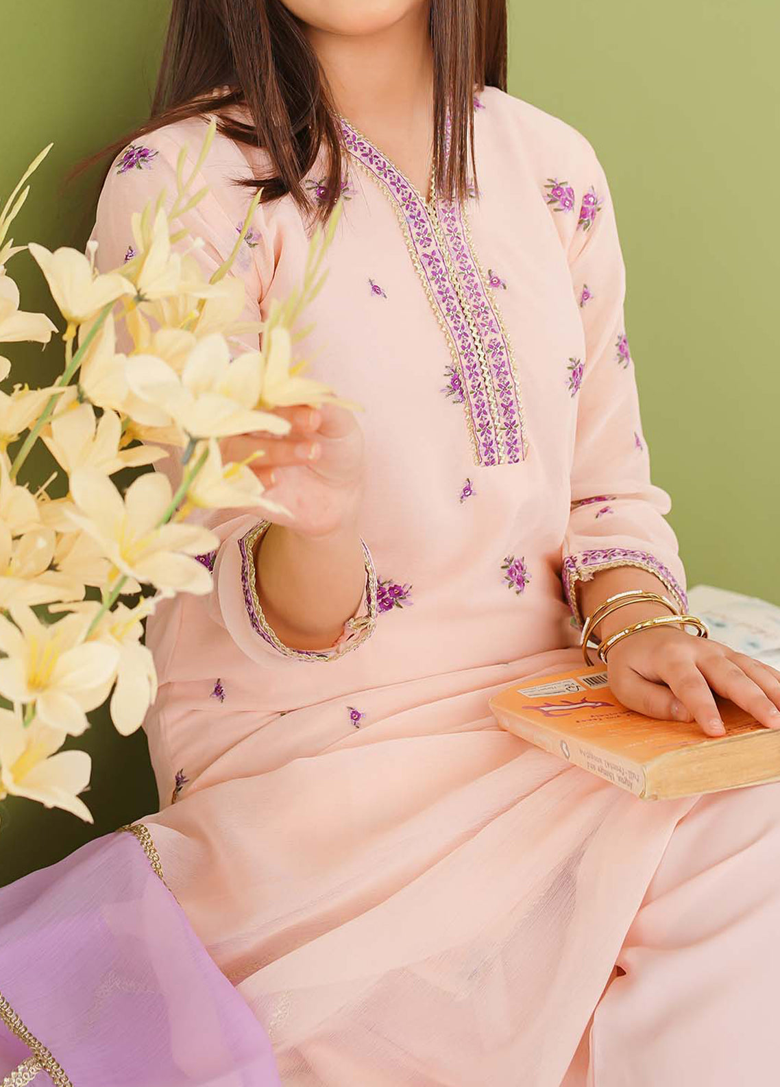 Modest Stitched 3 Piece Festive Edit Vol-02 Collection'2025-Peach Chiffon Embroidered Suit