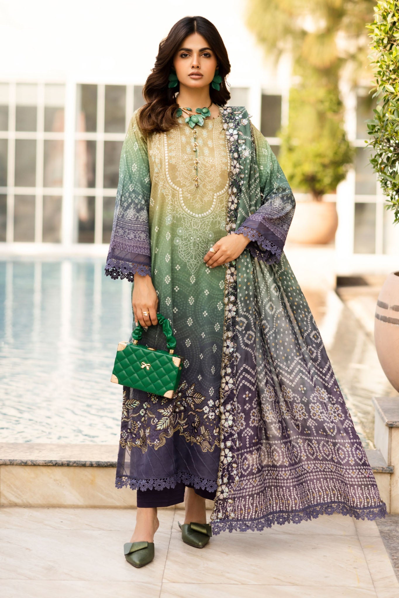 Unstitched 3 Piece Embroidered Lawn With Emb Lawn Scalloped Dupatta Suit