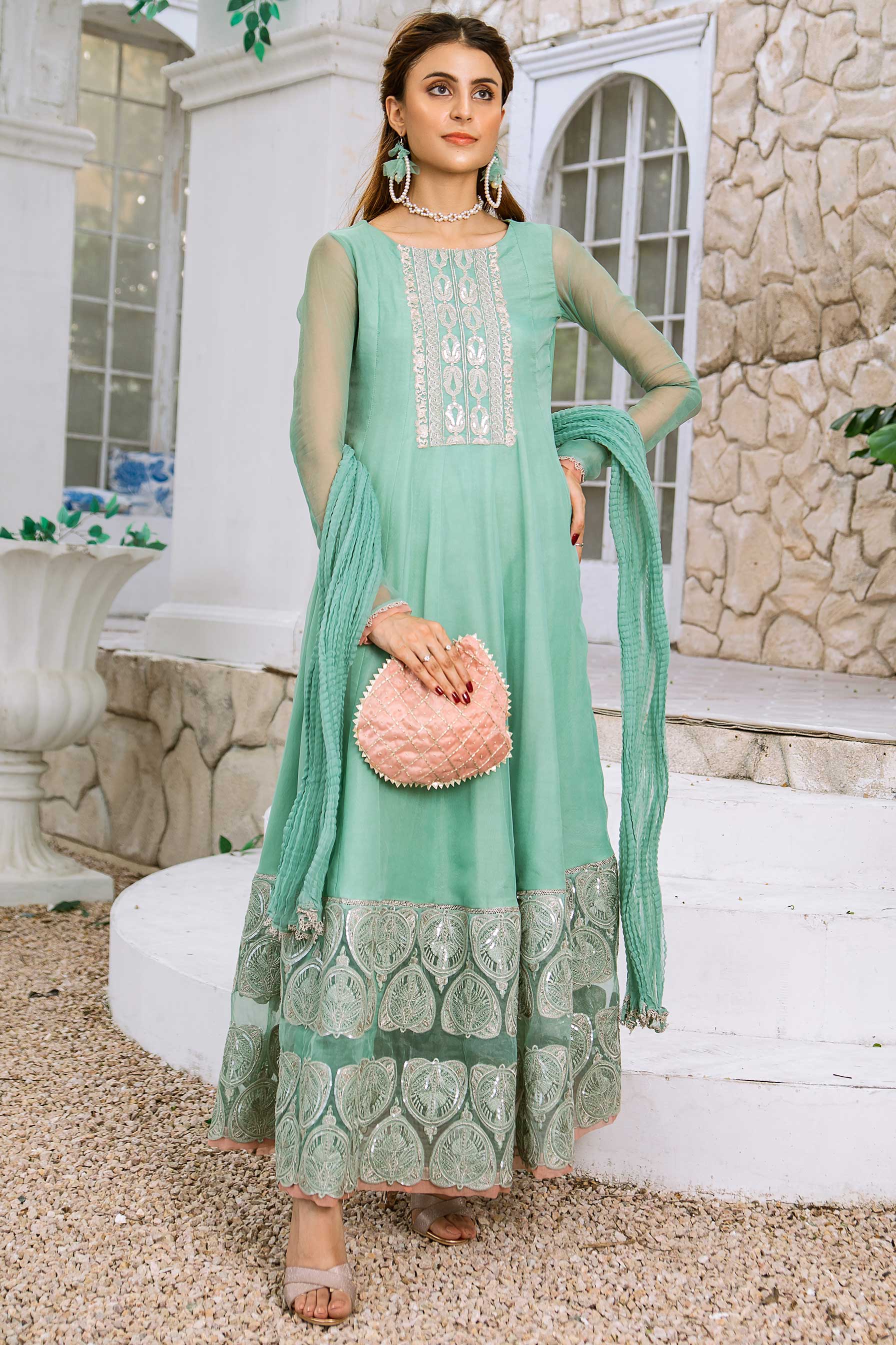 Embroidered Organza Frock Embroidered Organza DupattaEmbellished Pk Raw Silk Trouser
