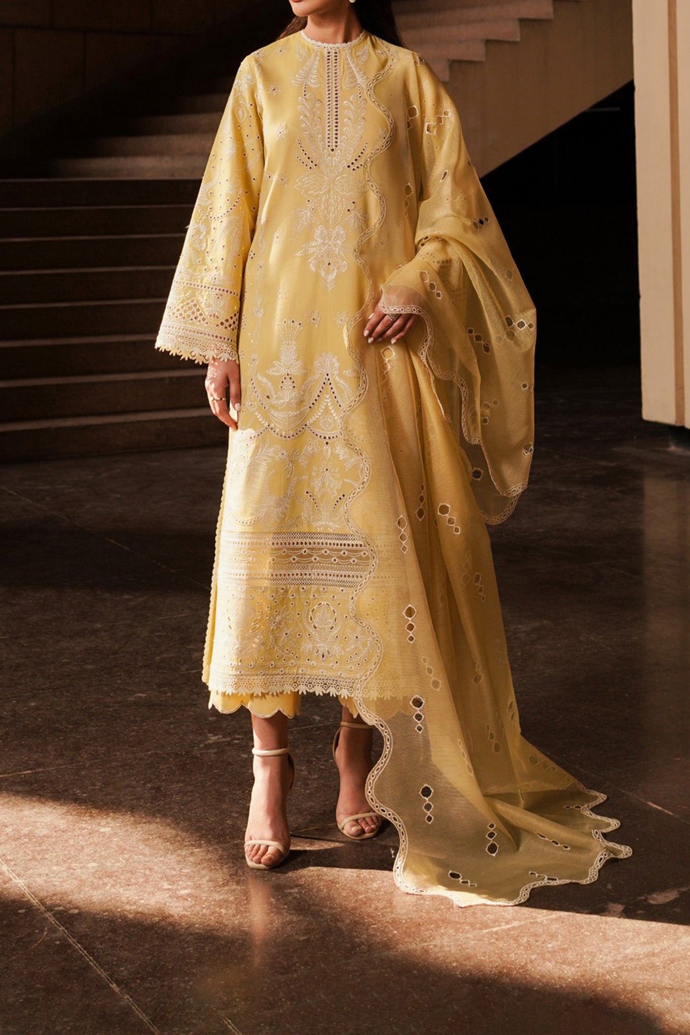 Afrozeh Unstitched 3 Piece Festive Emb Chikankari Lawn Collection'2024-ALV-01-Canary