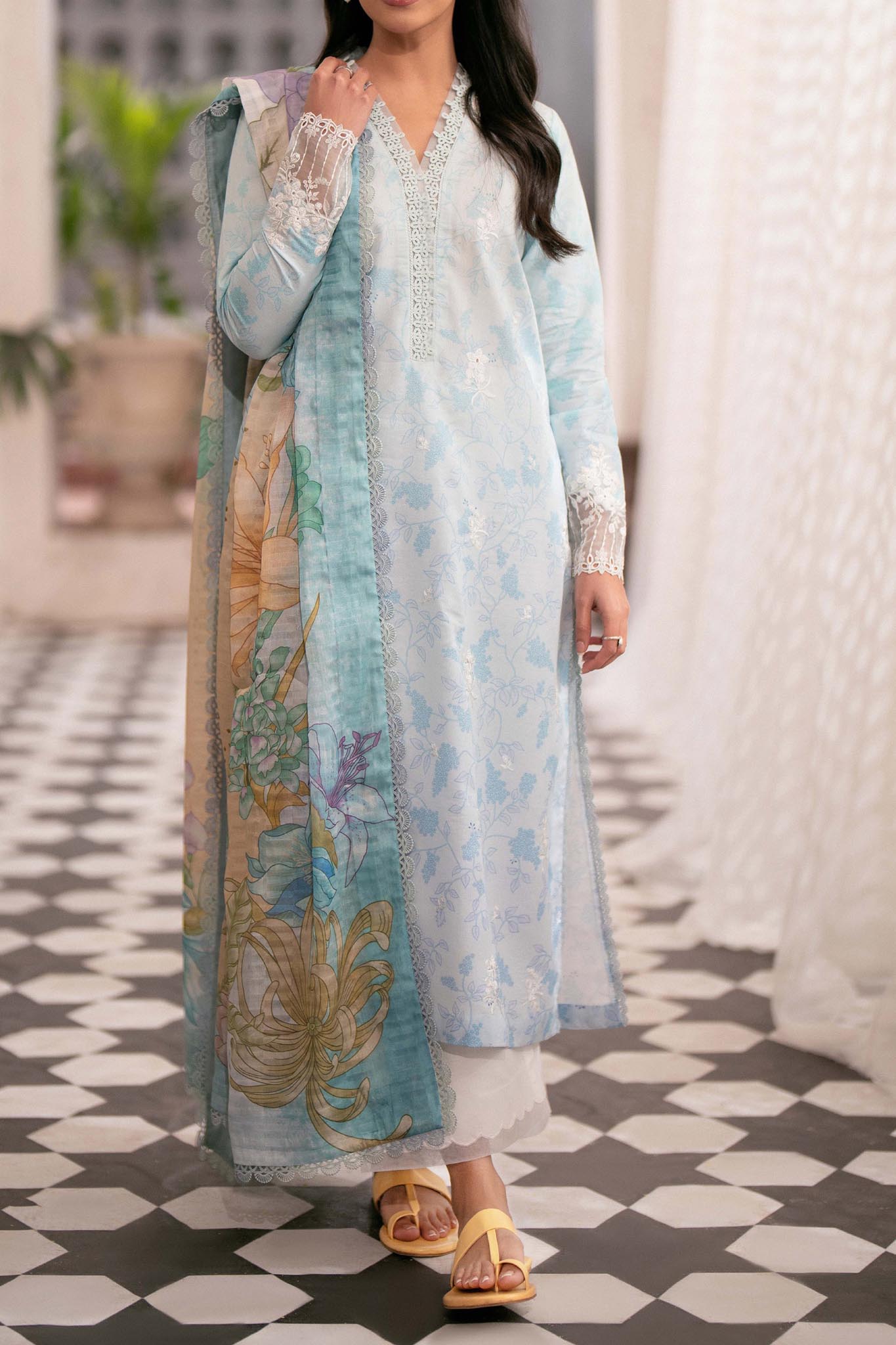 Printed Dupatta Fancy Monar? 2.50 Meters Printed and Embroidered Shirt Front Lawn 1.15 Meters Printed Shirt Back Lawn 1.15 Meters...