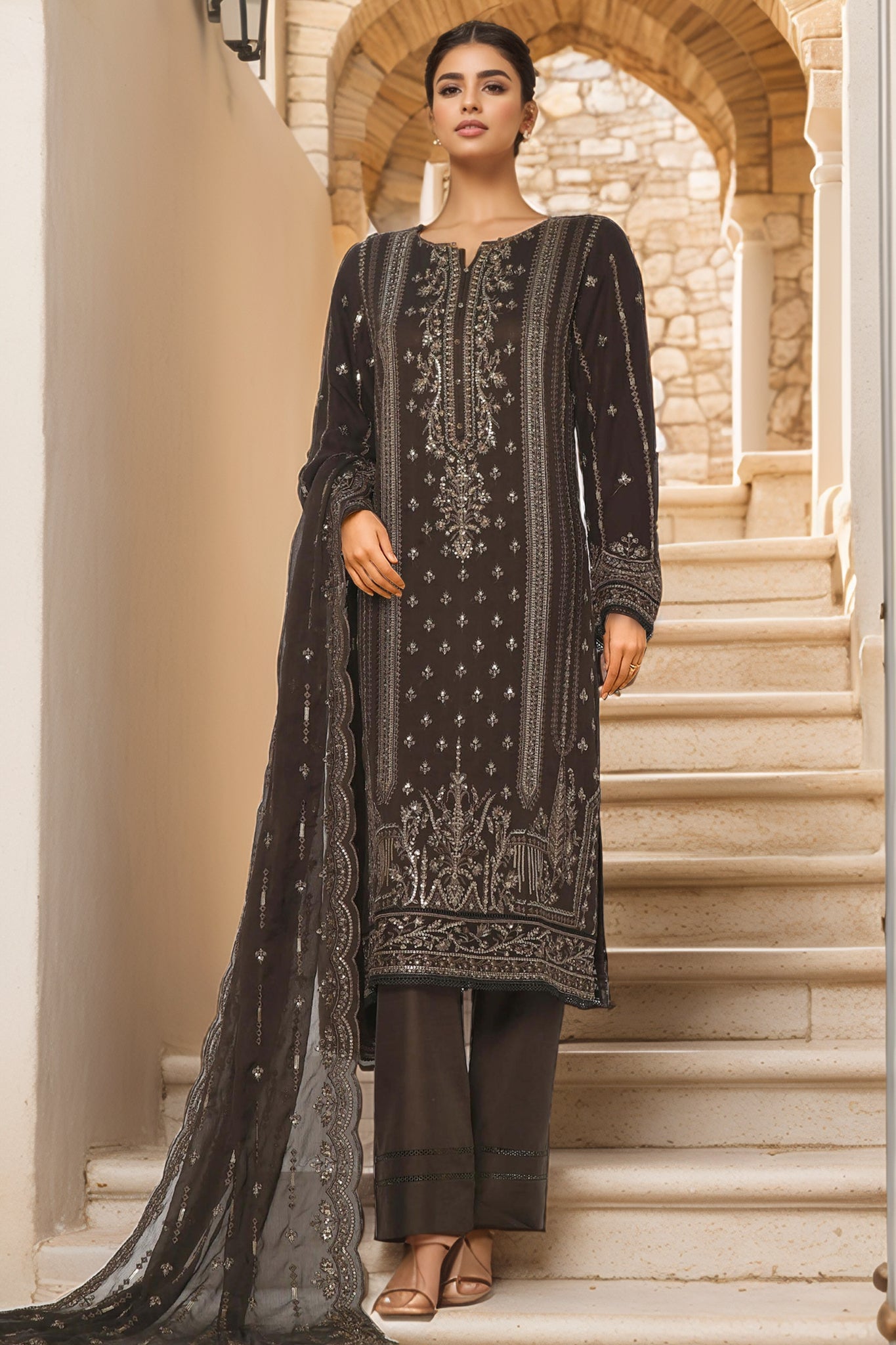 3 Piece Stitched Embroidered Chiffon Suit
