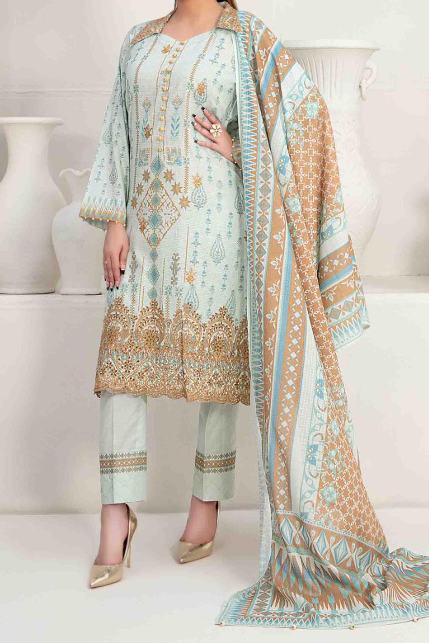 3 Piece Stitched Daman Boring Embroidered Digital Lawn With Embellishment