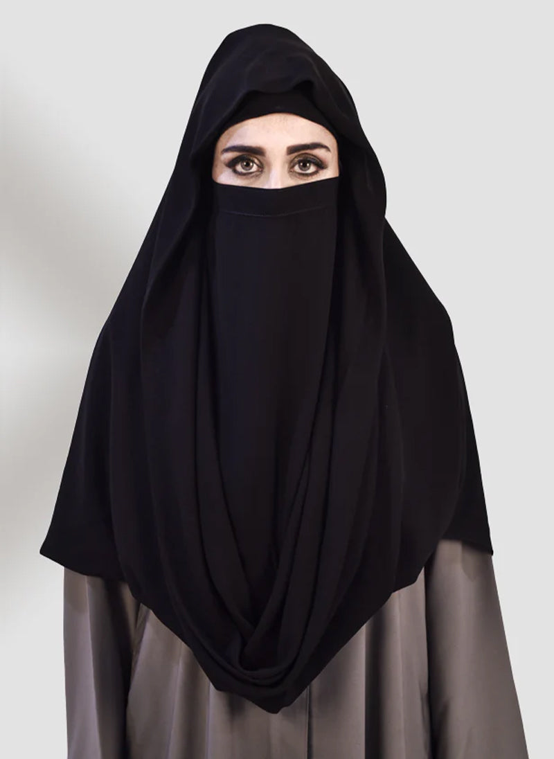 This ready to wear Air Line Scarf adds a touch of elegance to any outfit. Made with premium quality fabric, our black veil scarf exemplified comfort and modesty along with luxury. It is designed to complement any outfit and is a go-to choice or any occasion, whether it?s a casual gathering or a special event.