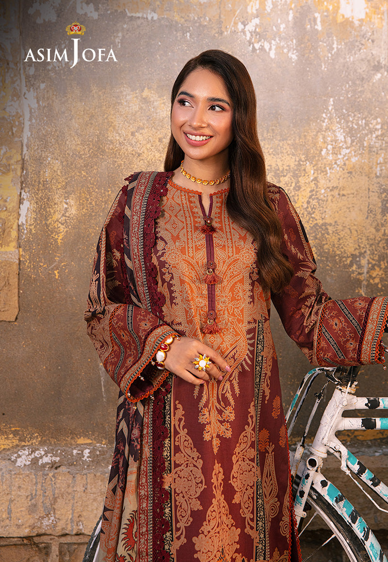 Picture a dance of elegance in shades of maroon, swirling with the essence of tradition and grace. This ensemble from Asim Jofa's “Aira – Summer Print Collection” is a poetry of colors and patterns a reflection of cultural richness and sophistication. The colorful embroidery adorning the shirt mirrored on the dupatta creates a mesmerizing tapestry of beauty. With Sabeena Farooq, it becomes a dream woven with threads of grace inviting you to lose yourself in its captivating allure.