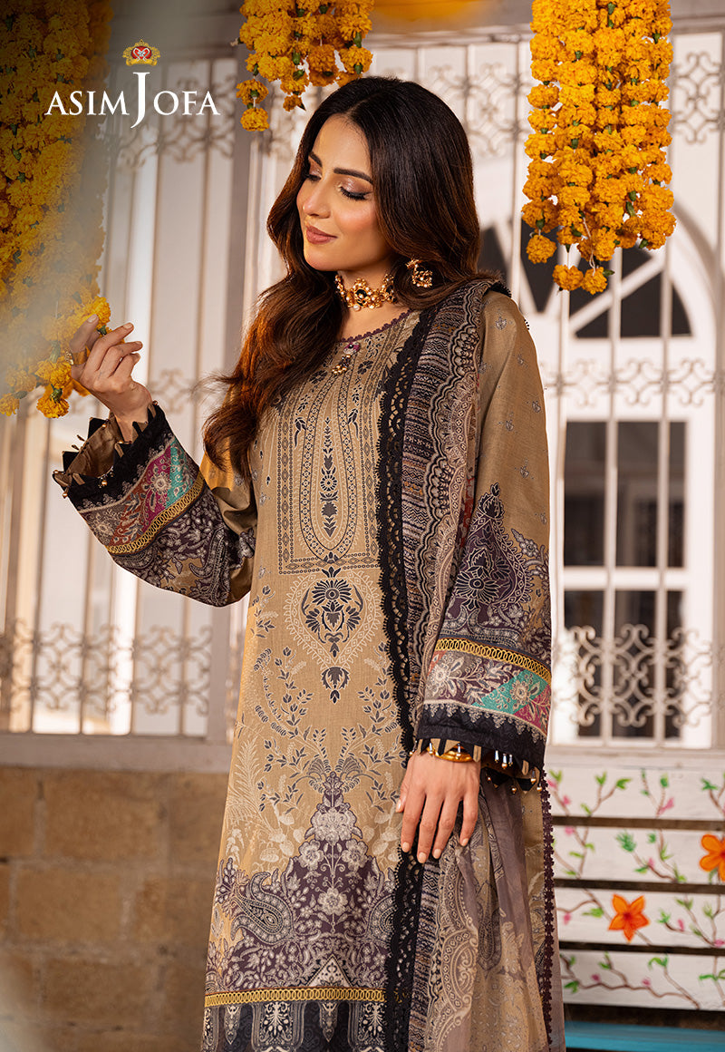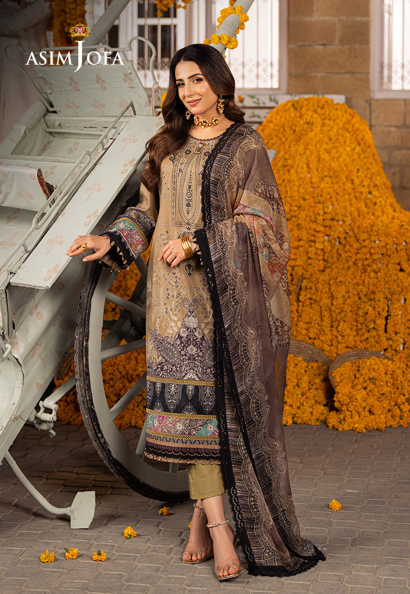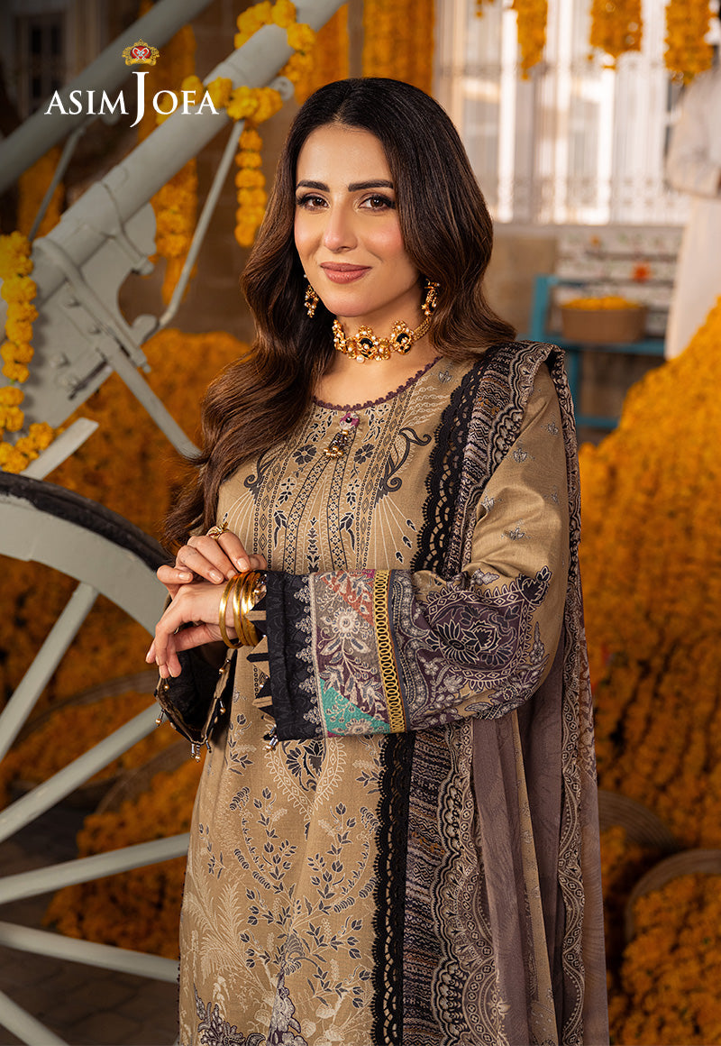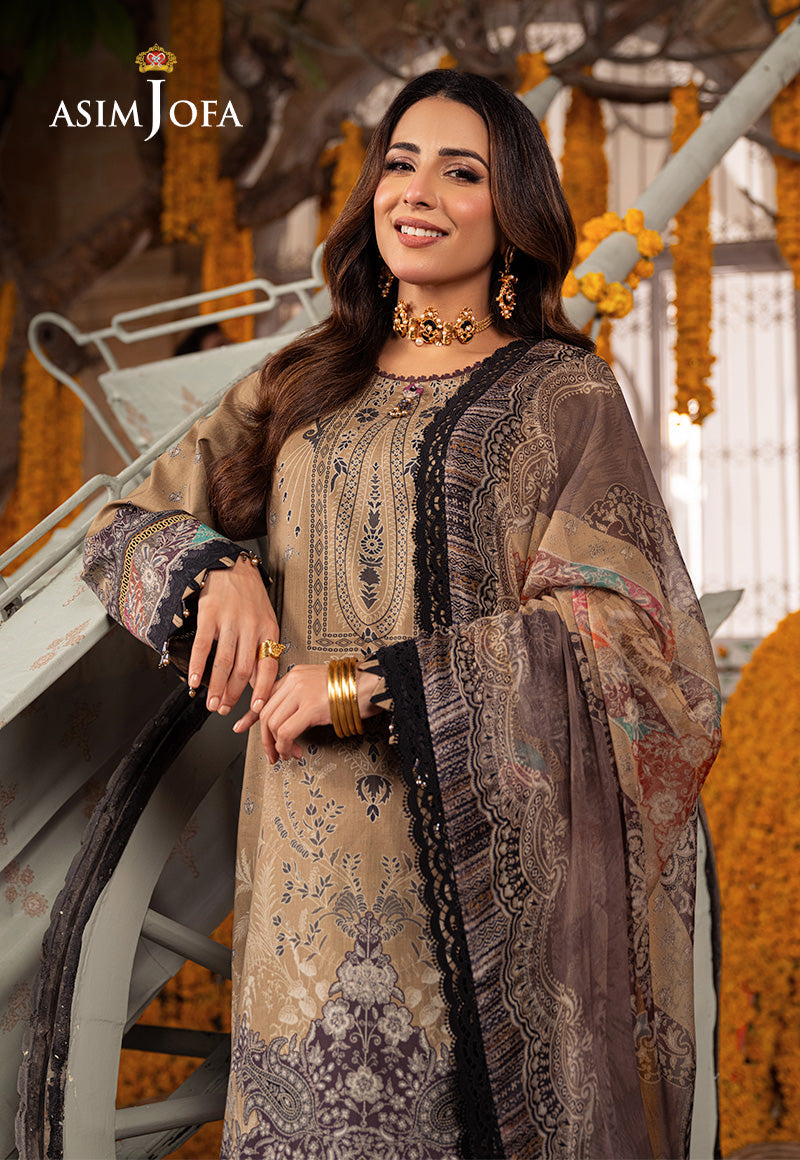 Elevate your style with the understated elegance of this khaaki number from Asim Jofa's "Aira – Summer Print Collection". The digital printed lawn shirt features pure traditional motifs and designs that resonate with the soul of Pakistani heritage. Paired with a digital printed chiffon dupatta, this ensemble exudes a sense of grace and refinement. Perfect for those who appreciate the beauty of tradition, this outfit invites you to embrace the rich cultural tapestry of Pakistan with every wear.
