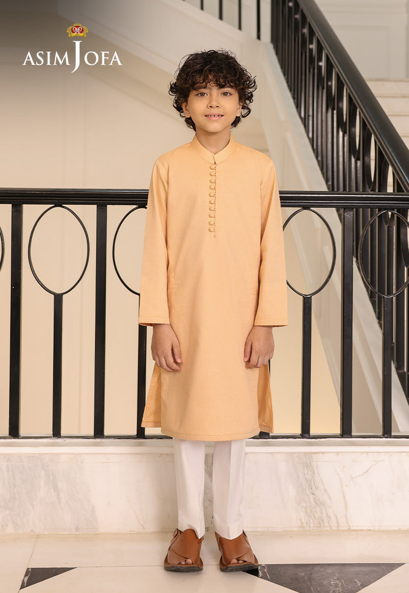 For a touch of festive charm, this peach kurta is a stunning addition. The intricate loops and ball buttons on the front provide a flawless detail that enhances its overall appeal.