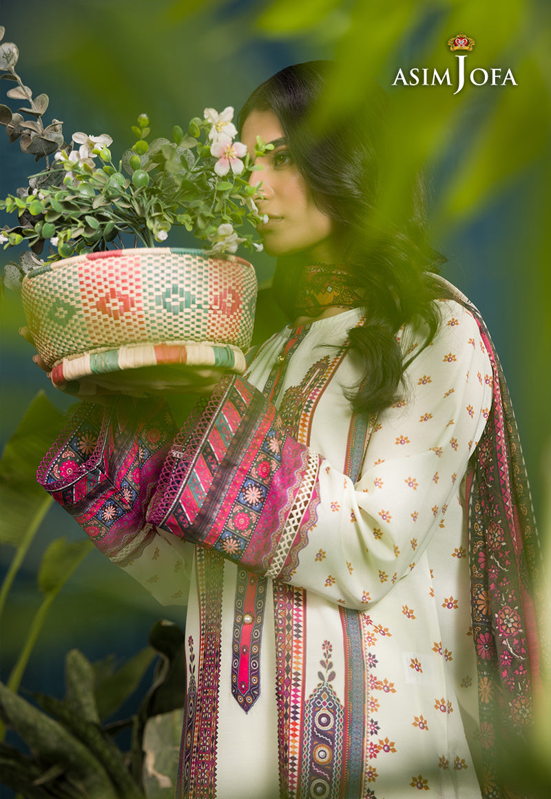 Embrace spirit whisper shade in this Swiss lawn ensemble, featuring architectural patterns on the shirt, paired with trousers and a soft pink-hued dupatta.