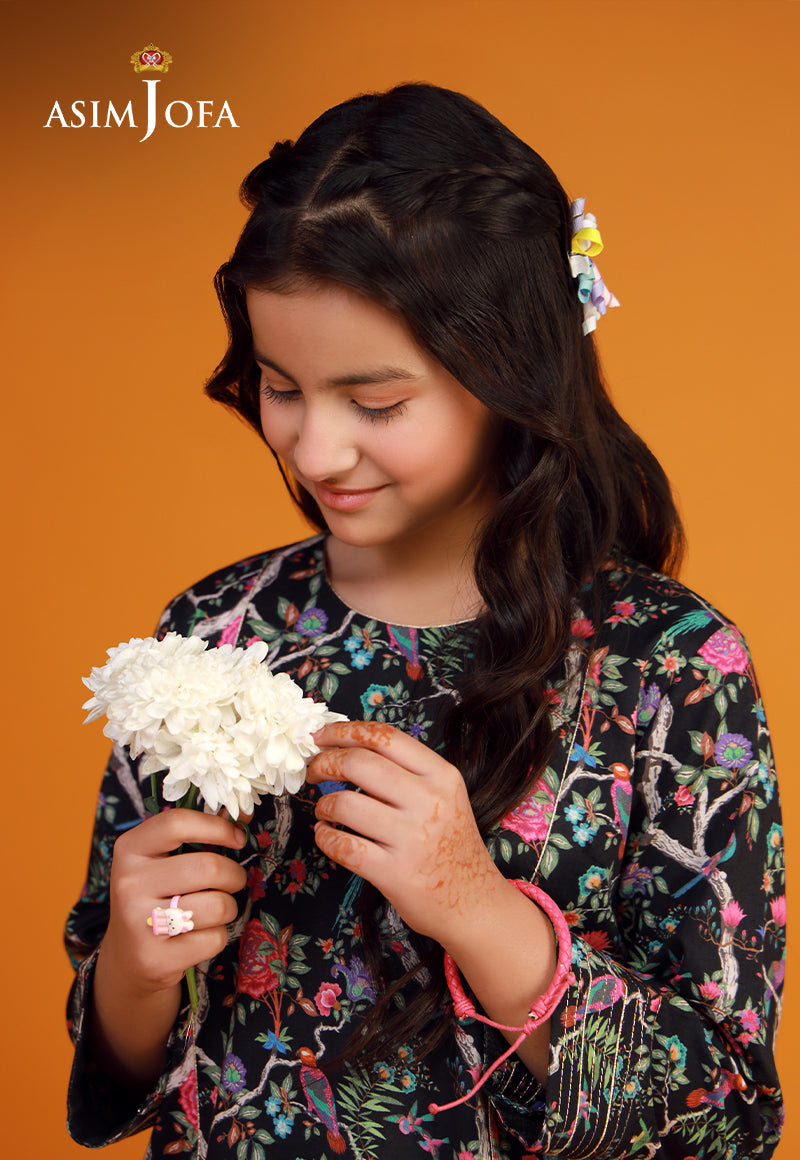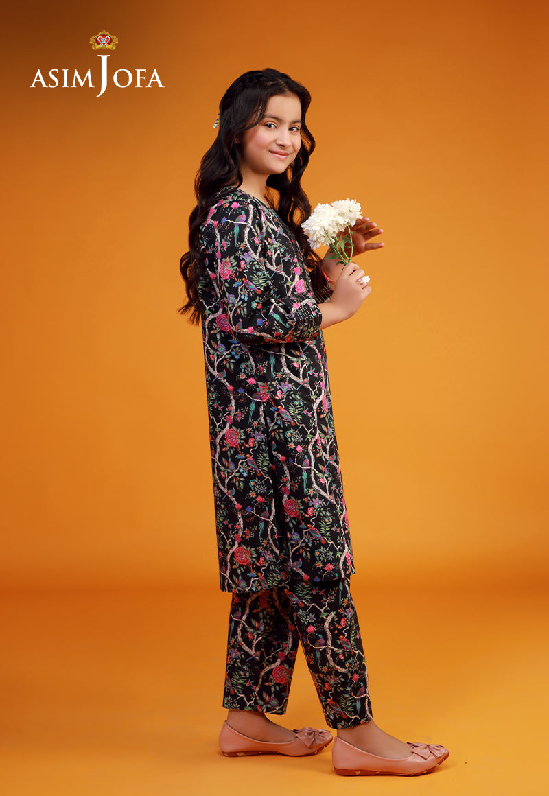 Inspired by a forest under a starlit sky, this black outfit captures the magic of nature with its lively print. The trousers echo the same design, creating a storybook-worthy look for little dreamers.