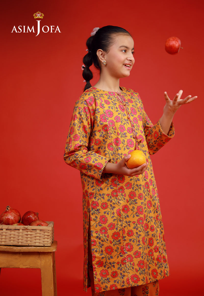 With roses blooming across a mustard canvas, this outfit brings elegance and cheer together. The trousers feature a complementary print that ties the whole look into a floral fantasy for your little one.