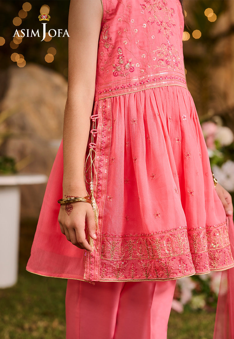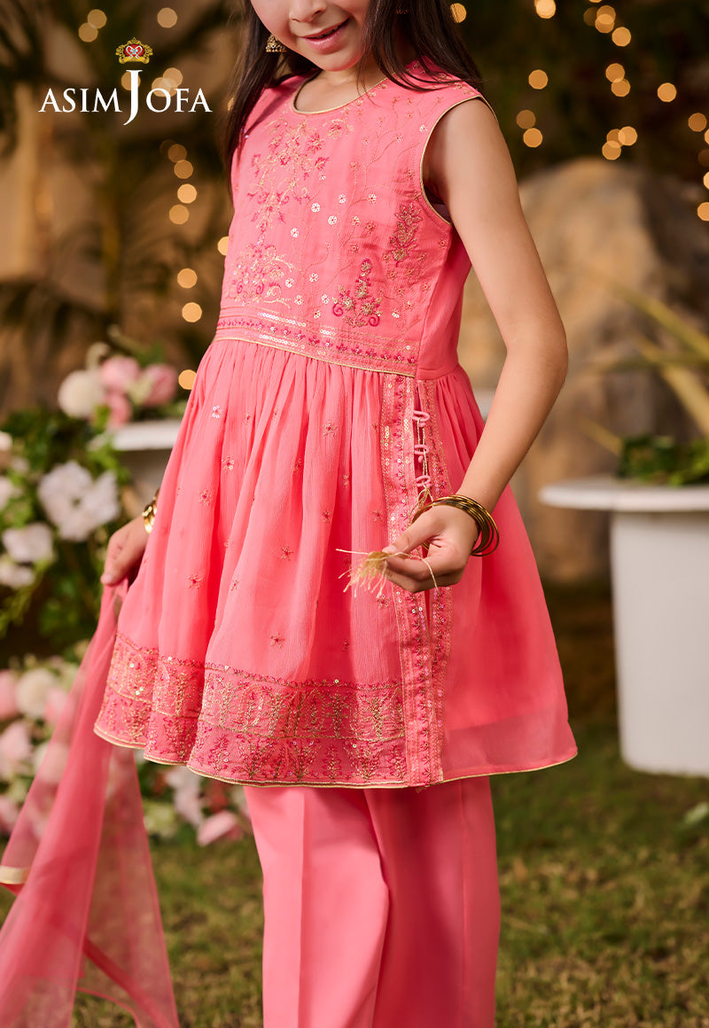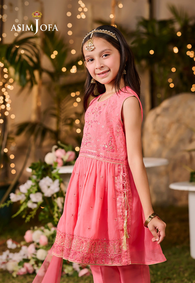 This elegant pink ensemble, featuring intricate embroidery, is the epitome of girlish charm. The soft, delicate hue brings a sense of grace and freshness to the outfit. Complemented by matching trousers and a flowing dupatta, this set is ideal for any special occasion.
