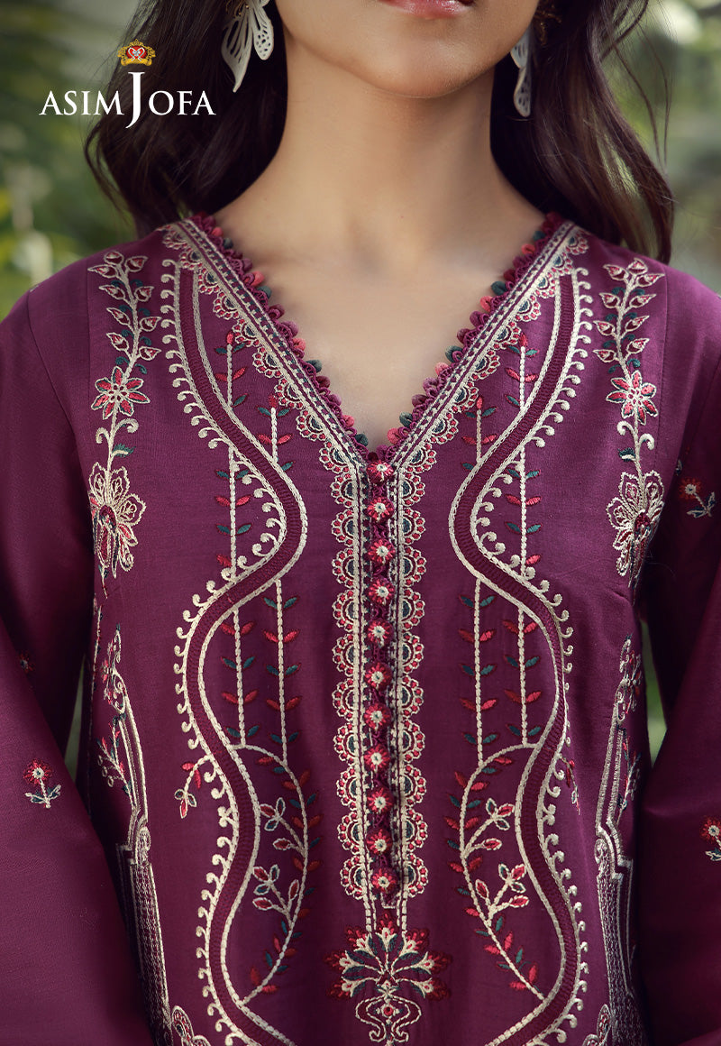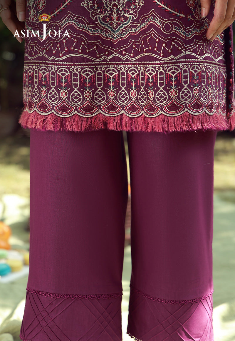 Where celebration meets couture in a symphony of color. This magenta creation is richly embroidered with beige, green, rust, and tonal magenta threads?eamlessly weaving tradition into a distinctly modern silhouette. The intricate artistry across the shirt reflects the vibrance of Eid festivities, while the gorgeously printed chiffon dupatta introduces fluidity and flair, ensuring every step feels like a grand entrance.