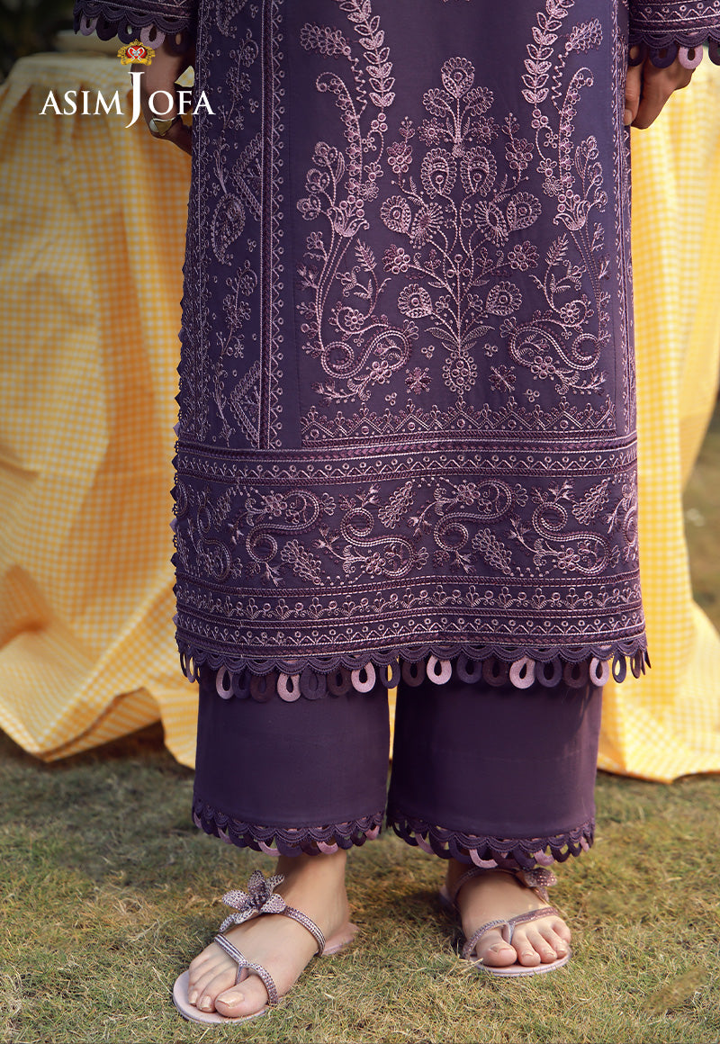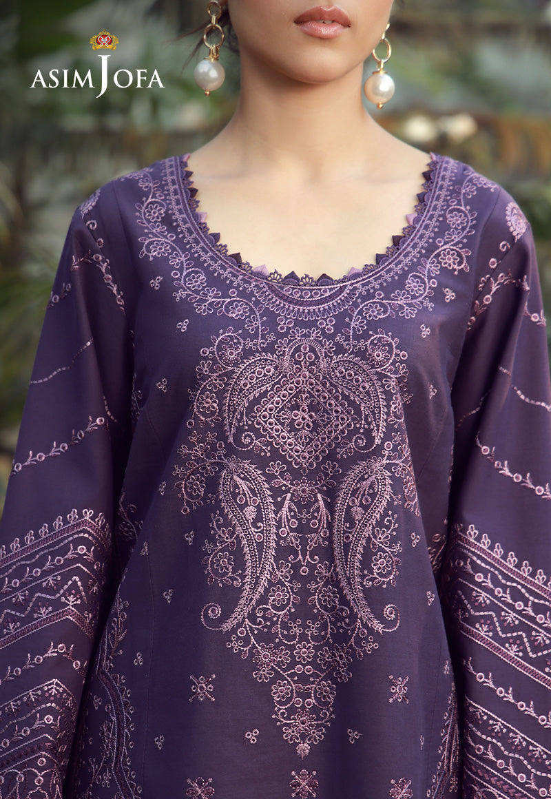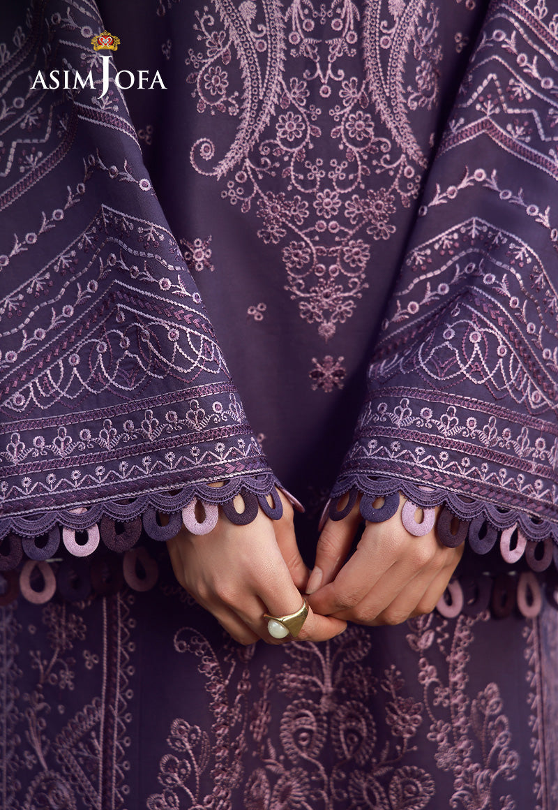 A regal reverie designed for unforgettable festivities. Cloaked in deep purple, the shirt is adorned with tonal embroidery that builds a refined, textural landscape through layered hues. The intricate detailing enhances its majestic appeal, while the vibrant printed chiffon dupatta introduces a striking contrast transforming the ensemble into a statement of elegance crafted for grand Eid soir?s.