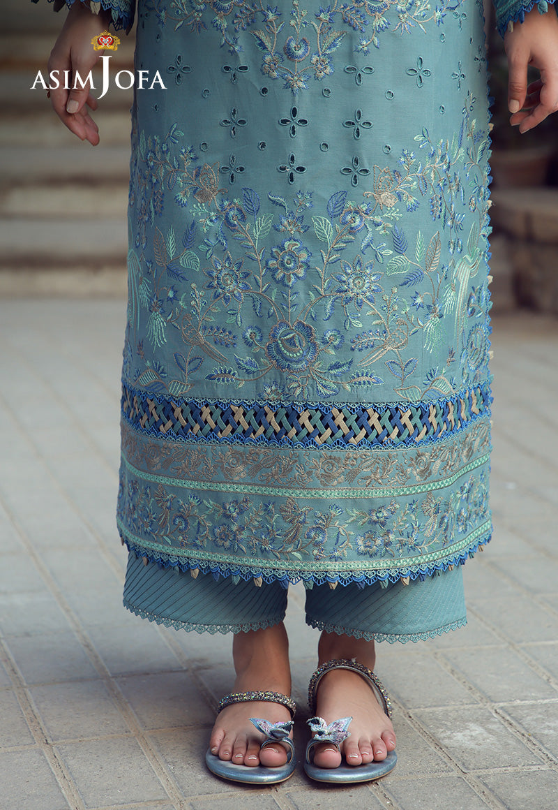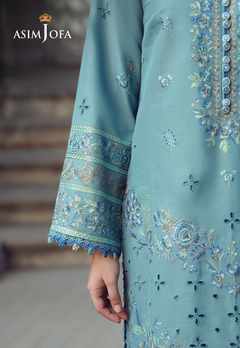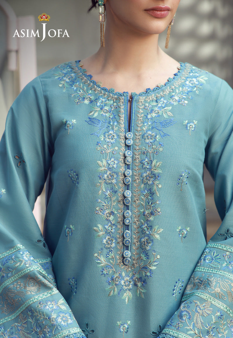 A luminous composition inspired by festive opulence. The dark aquamarine shirt is elevated with intricate threadwork and delicate boring techniques, forming floral and natural motifs that feel richly detailed yet perfectly balanced. Accompanied by a tonal printed chiffon dupatta, this ensemble embodies sophisticated elegance with a refreshing edge?deal for stylish Eid gatherings.