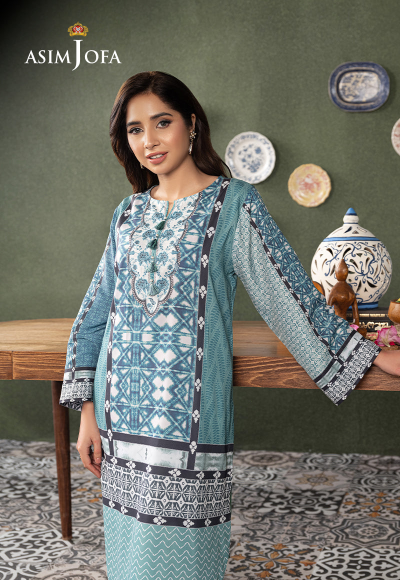 Experience the vibrant charm of a light blue tunic with a mix printed motifs – a versatile look to add a burst of hue to your wardrobe.