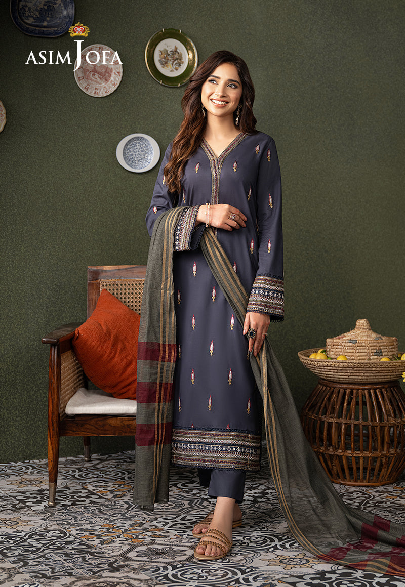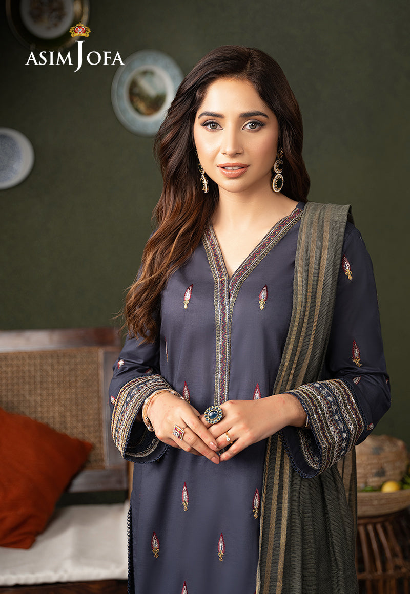 Step into refined elegance with an embroidered dark blue ensemble paired with a dupatta – a trio that combines comfort with timeless charm.
