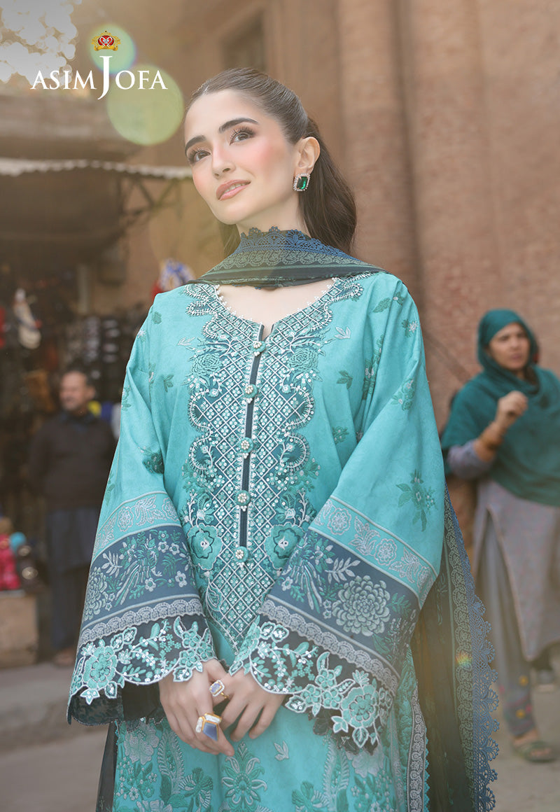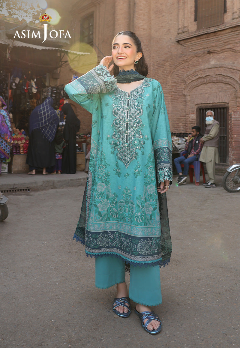 Refreshing and elegant, this turquoise ensemble captures the essence of effortless grace. The beautiful digitally printed shirt is elevated with gorgeous thread and sequins embroidery adorning the neckline and border, adding a touch of refined artistry. Paired with a digitally printed chiffon dupatta, this ensemble is an exquisite choice for any occasion.