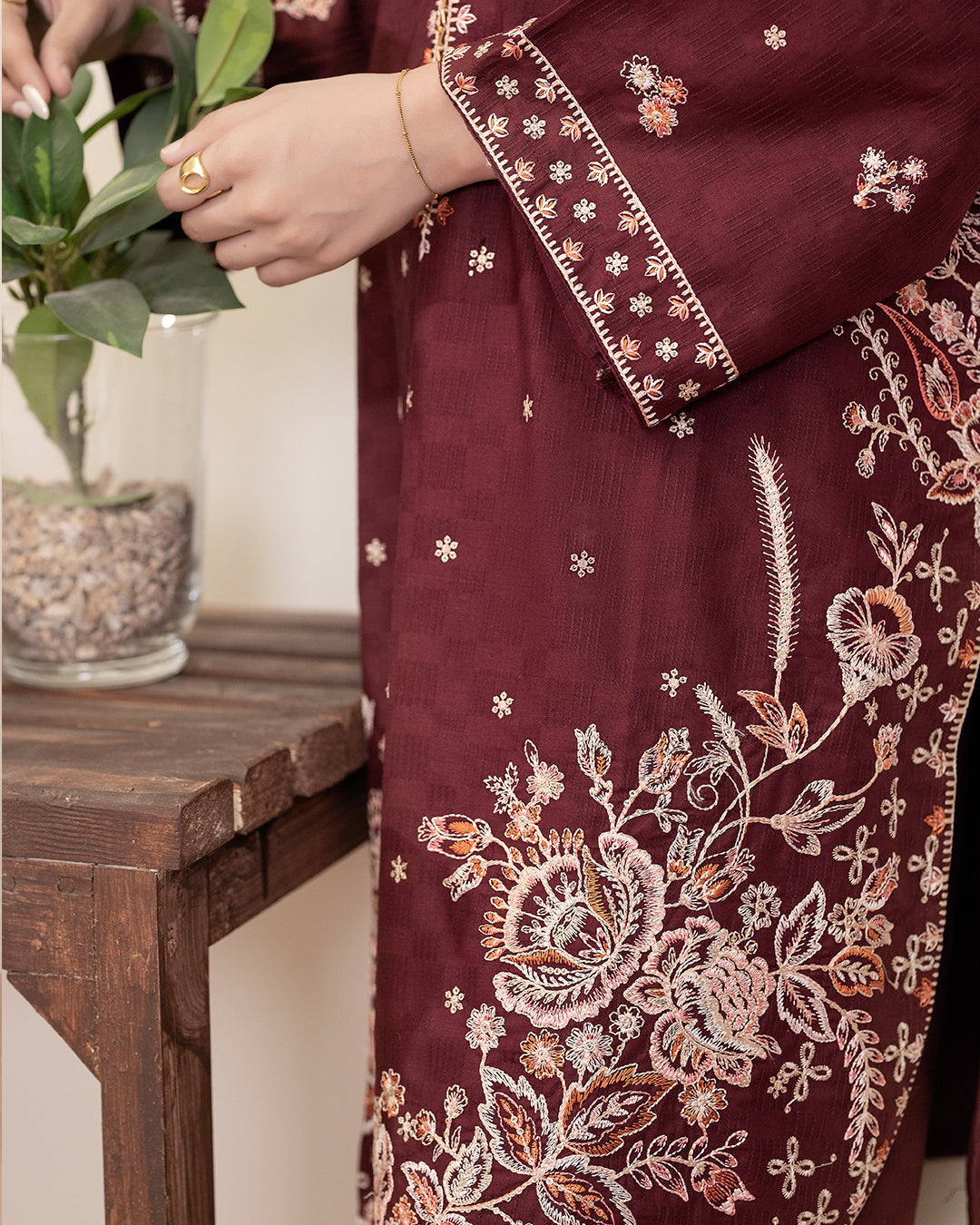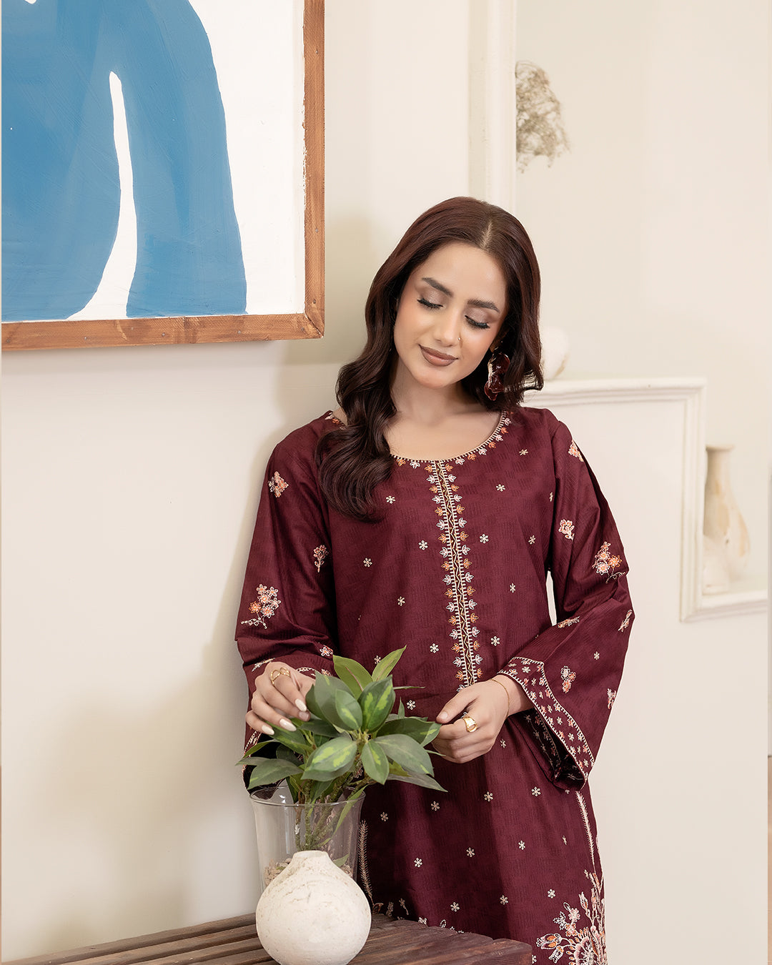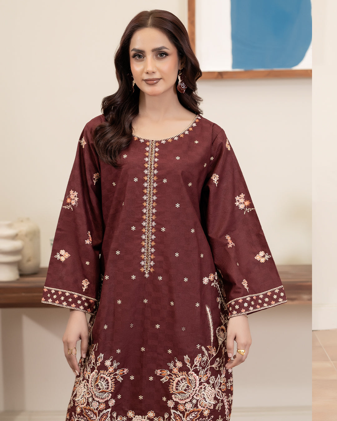 This exquisite Daily/Basic Wear Kurta Set is a winter wardrobe essential. The Straight Cut Kurta in luxurious Cotton Satin features intricate embroidered detailing. Paired with a classic Straight Trouser in comfortable Cotton fabric, this 2-piece set in sleek Black exudes elegance. Elevate your everyday style with this wardrobe staple from Flutterby.