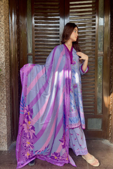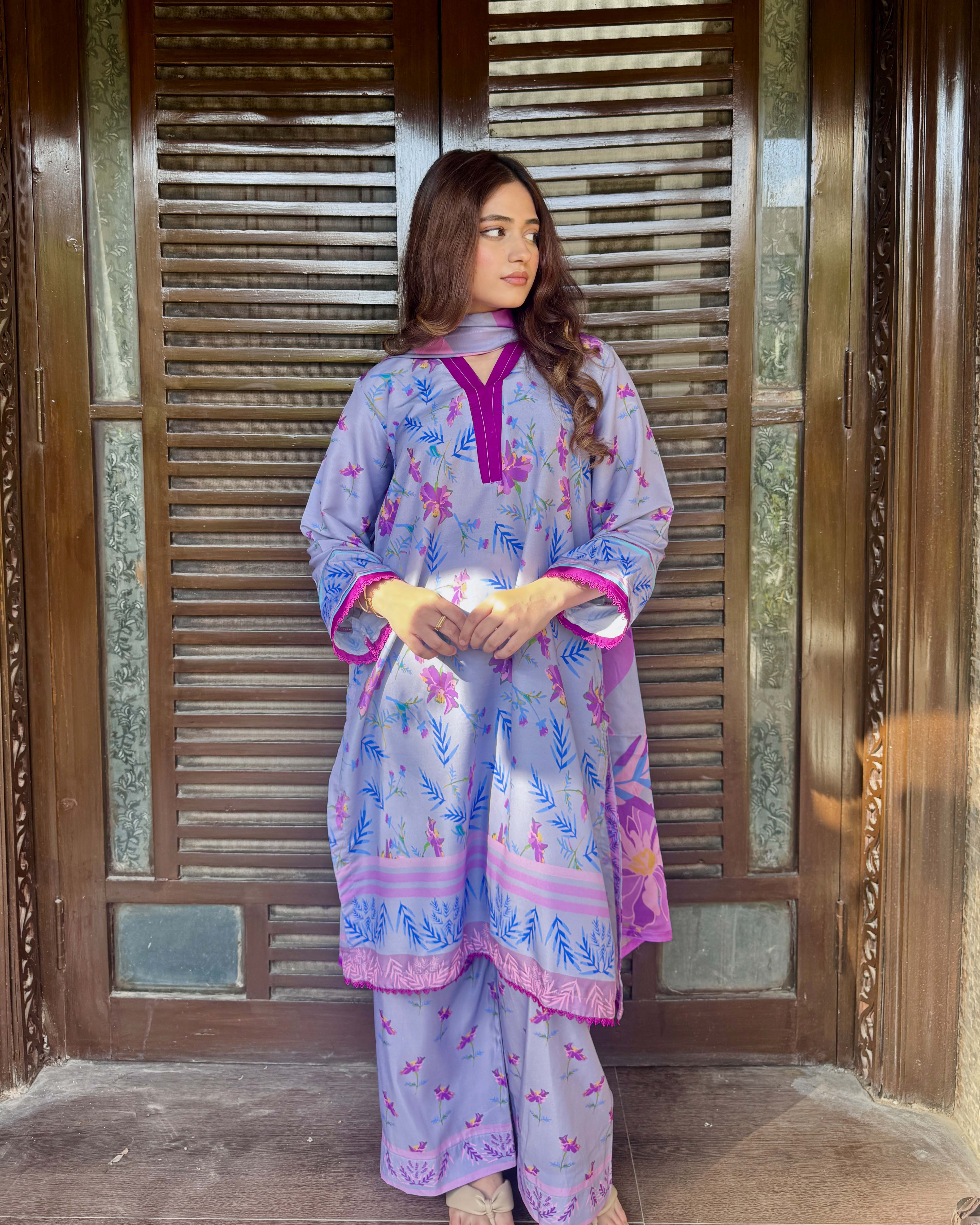 Embrace graceful charm with this 2-piece digital print ensemble in a dreamy Lavendar shade.