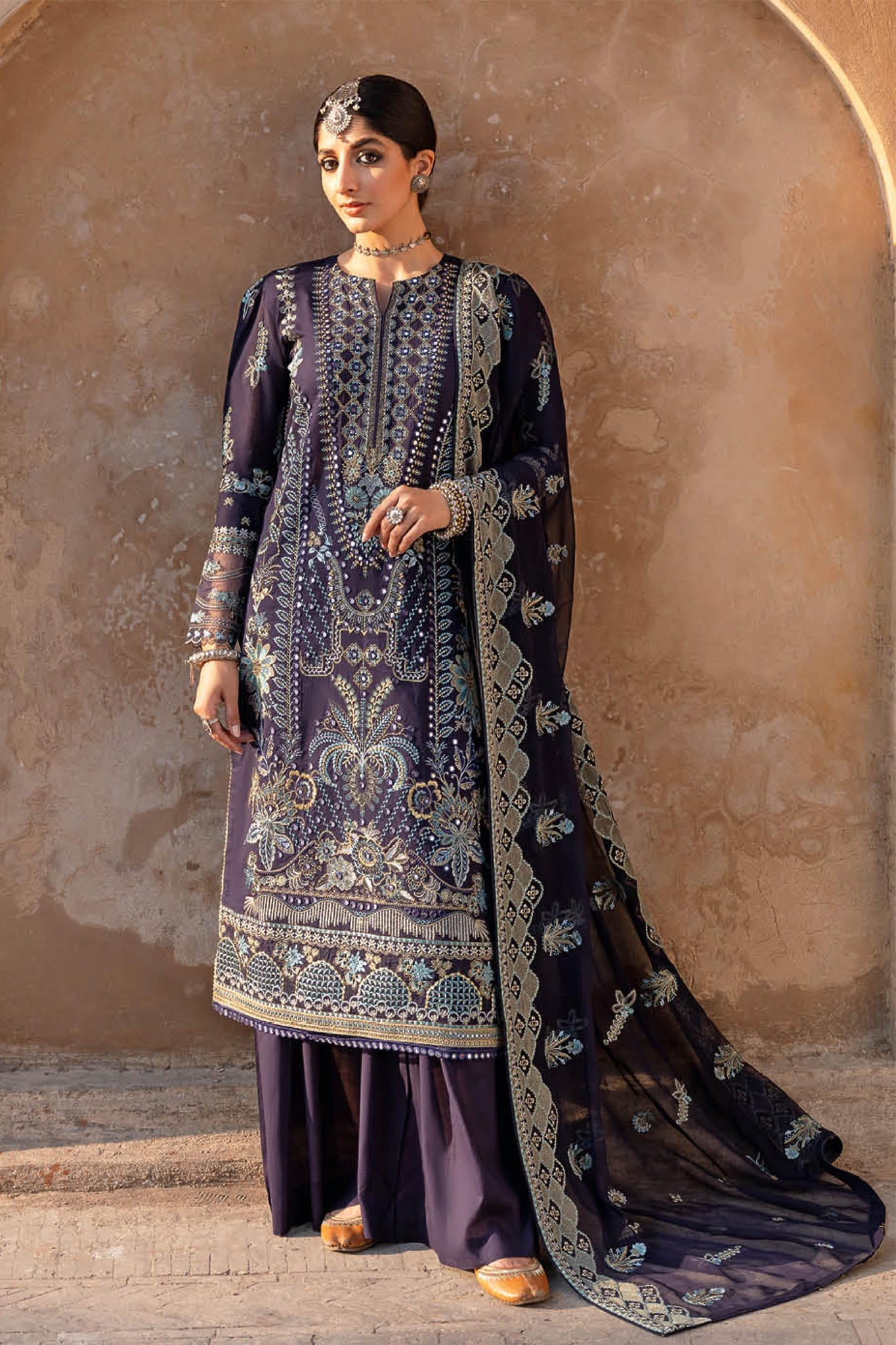 Embroidered chiffon dupatta