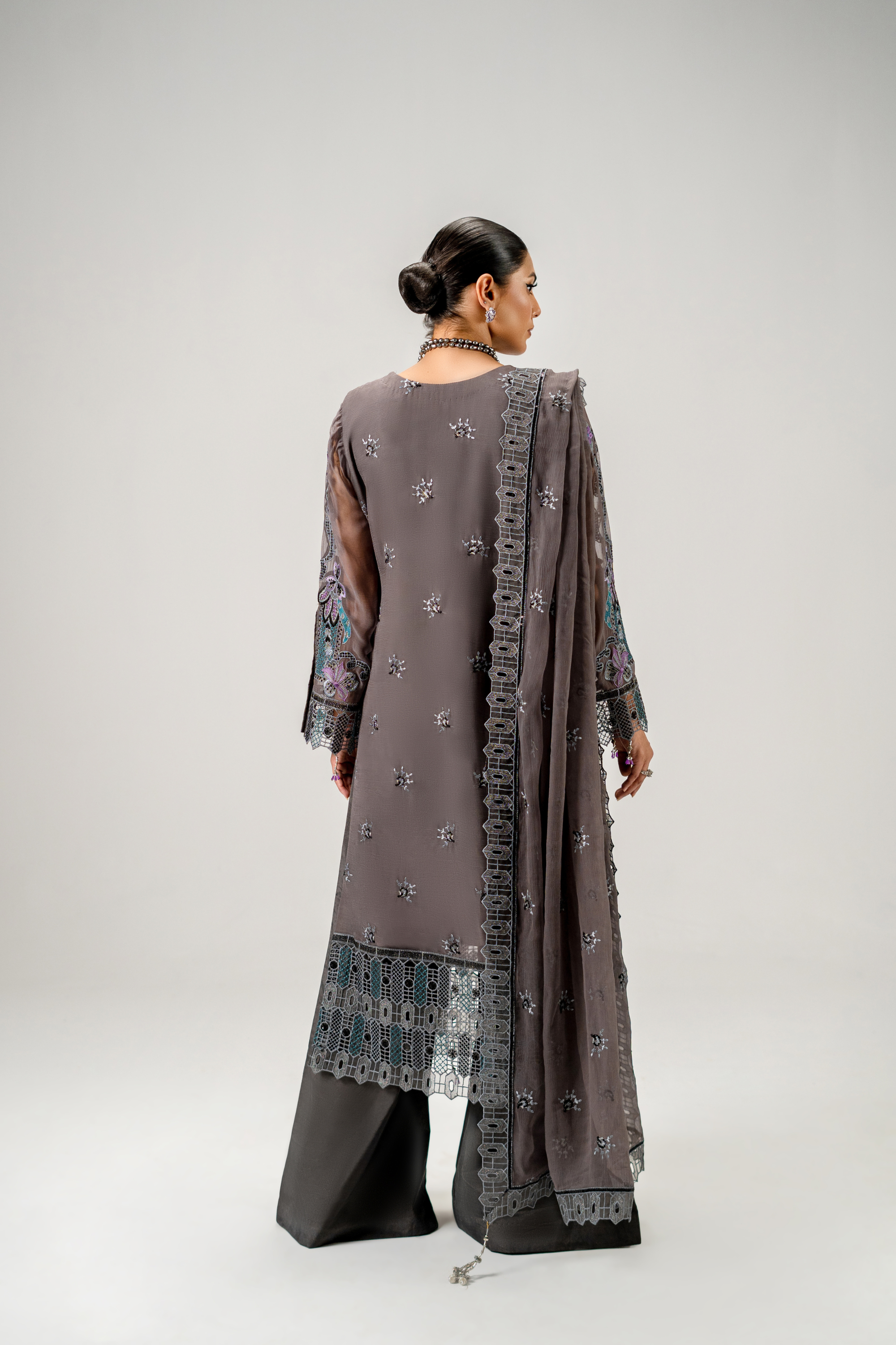 Embroidered chiffon dupatta 2.5 yds