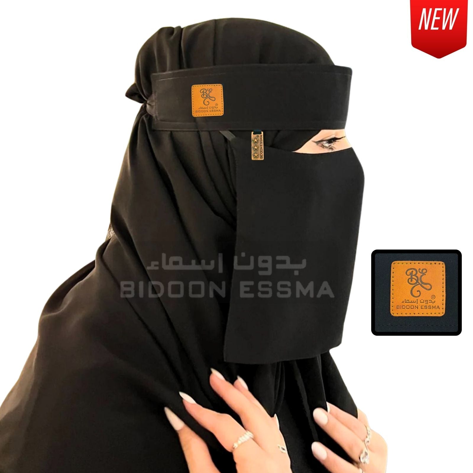 Saudi Niqab Description with Brand Leather Patch and Brand Metal Clip: