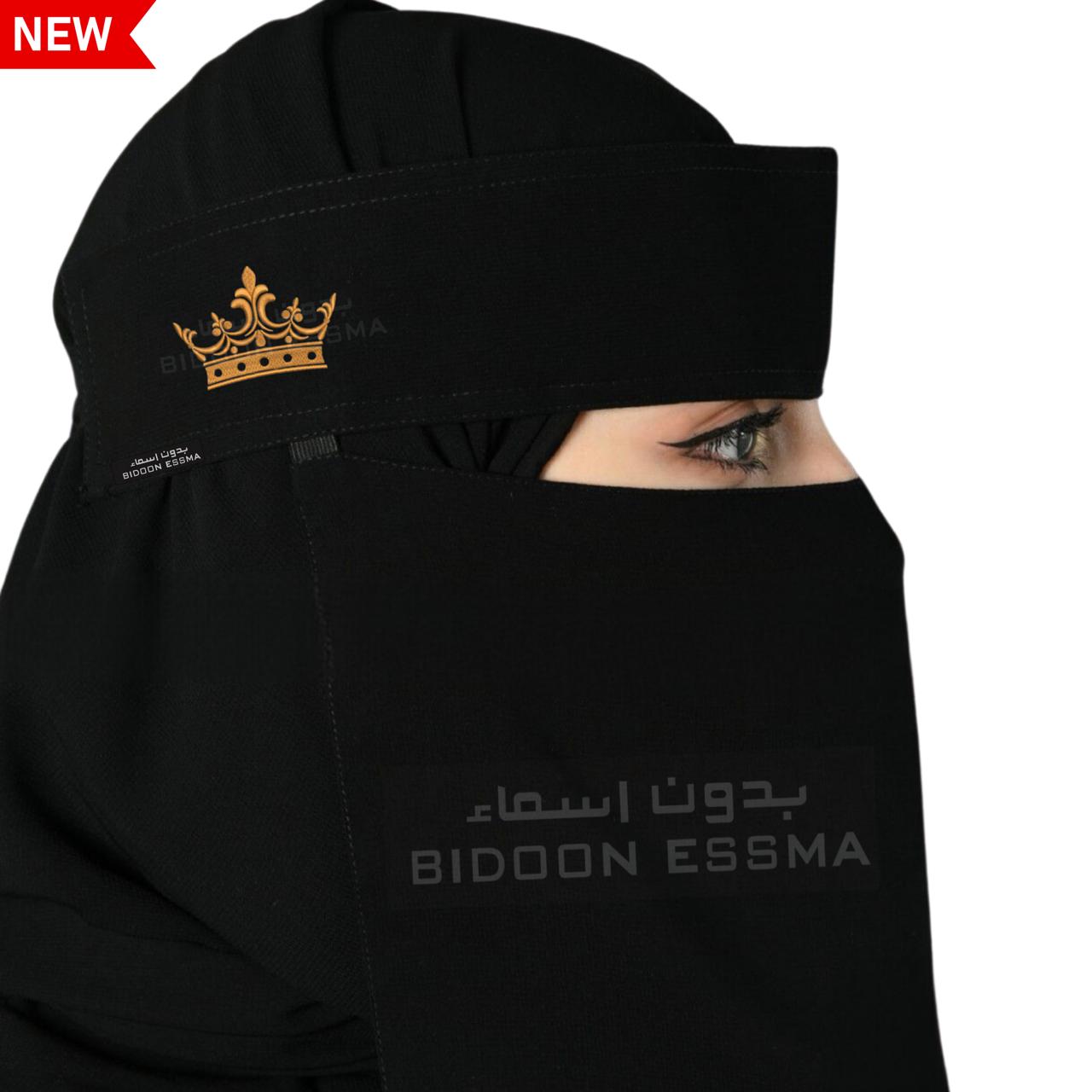 The Arabic Saudi Niqab Golden Crown Embroidery 10X12 by BIDOON ESSMA is a regal representation of Islamic modesty and elegance. Designed with intricate golden crown embroidery, this niqab is perfect for women who embrace tradition while exuding sophistication and grace.