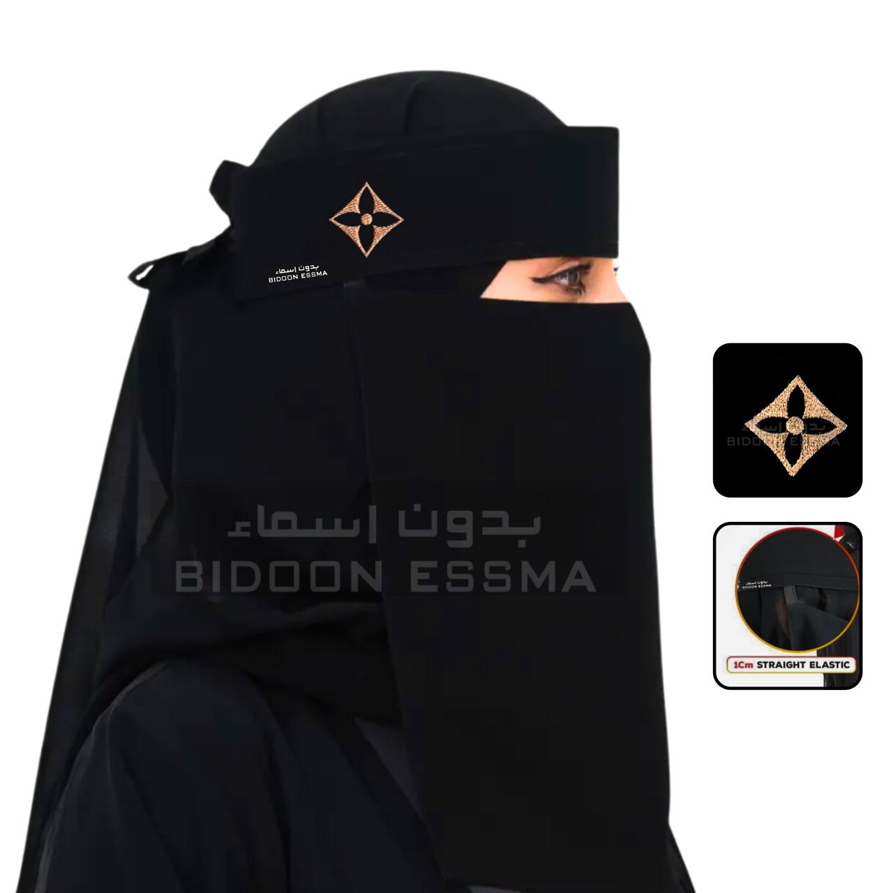 Arabic Saudi Niqab with Golden Rhombus Louis Vuitton-Inspired Embroidery ? 10x12 BIDOON ESSMA BRAND
