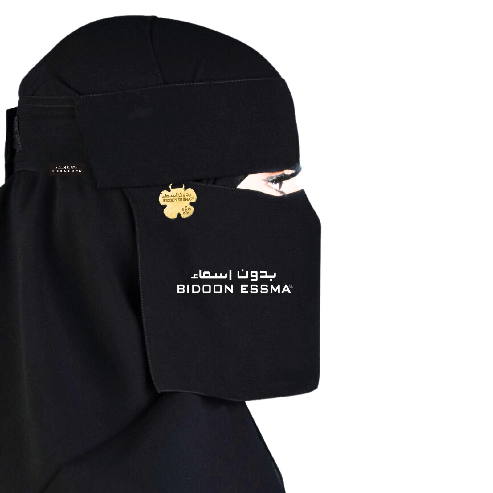 This Saudi-style flap niqab by BIDOON ESSMA is crafted from luxurious imported Korean fabric, offering superior comfort, durability, and a flawless drape. Designed for modesty and sophistication, it features a delicate floral metal logo, blending traditional Islamic attire with refined contemporary details.