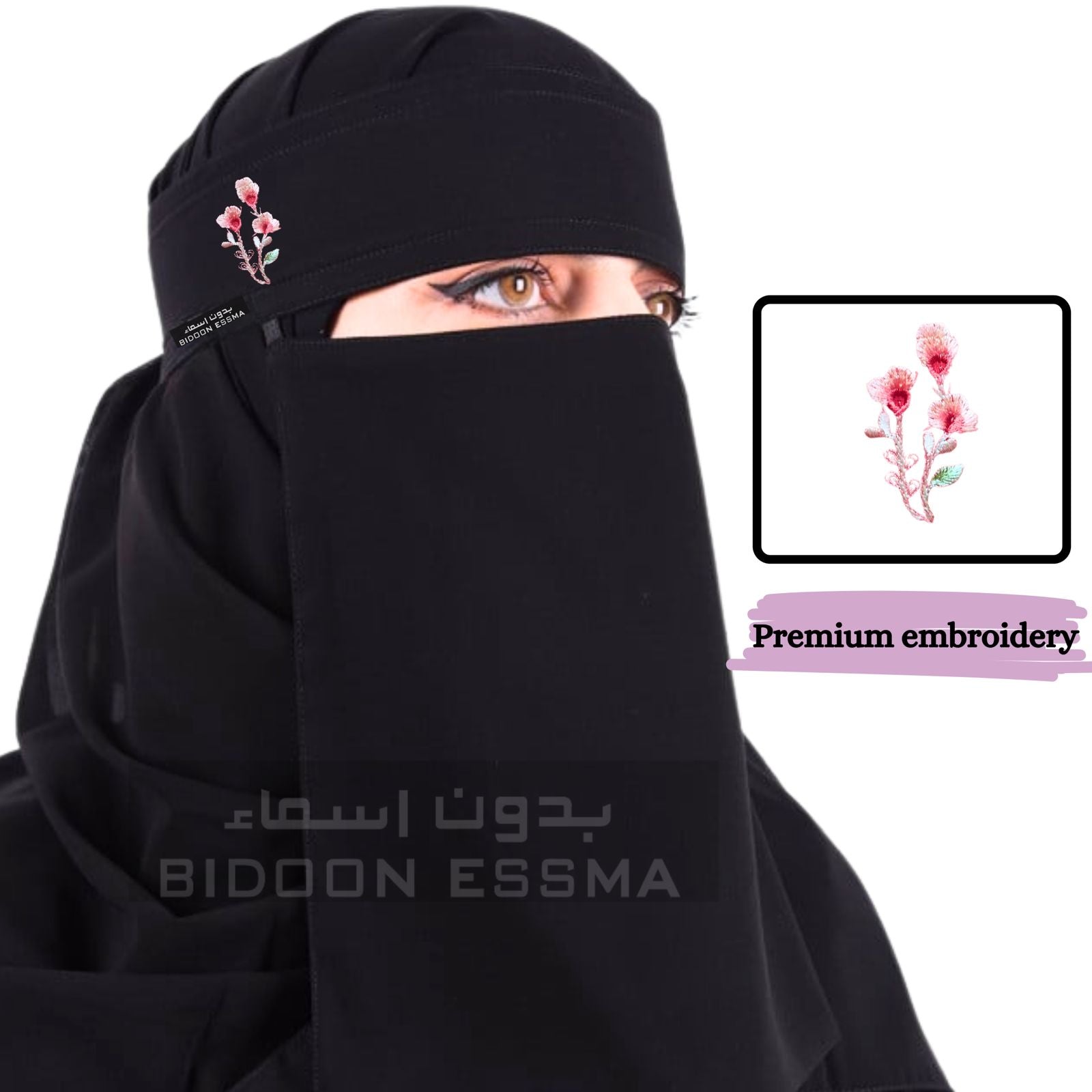 The Arabic Saudi Niqab Long Flower Pink Embroidery 10X12 by BIDOON ESSMA is a graceful blend of modesty and elegance. Adorned with delicate pink floral embroidery, this niqab is designed to offer full coverage while adding a touch of femininity and sophistication to your Islamic wardrobe.