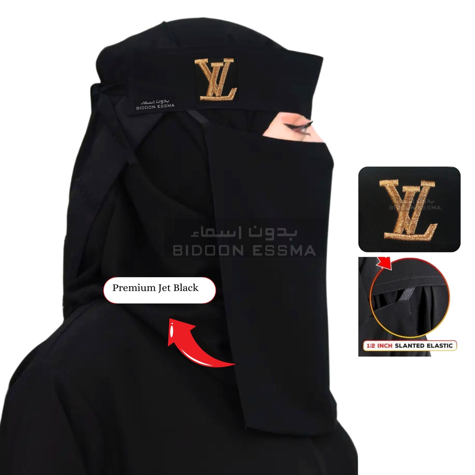 Product Description: Arabic Saudi Niqab with Louis Vuitton (LV) Inspired Golden Embroidery