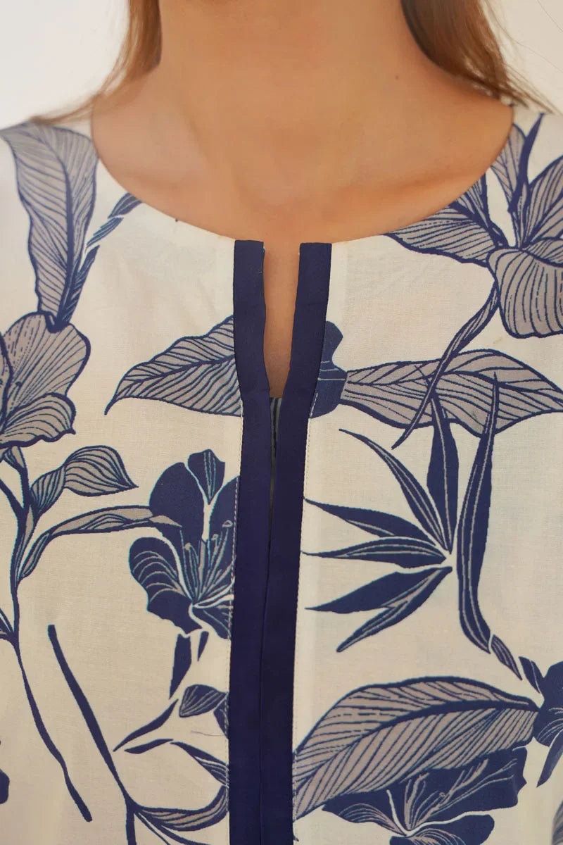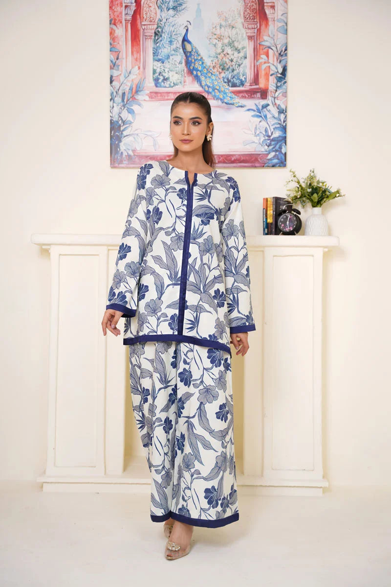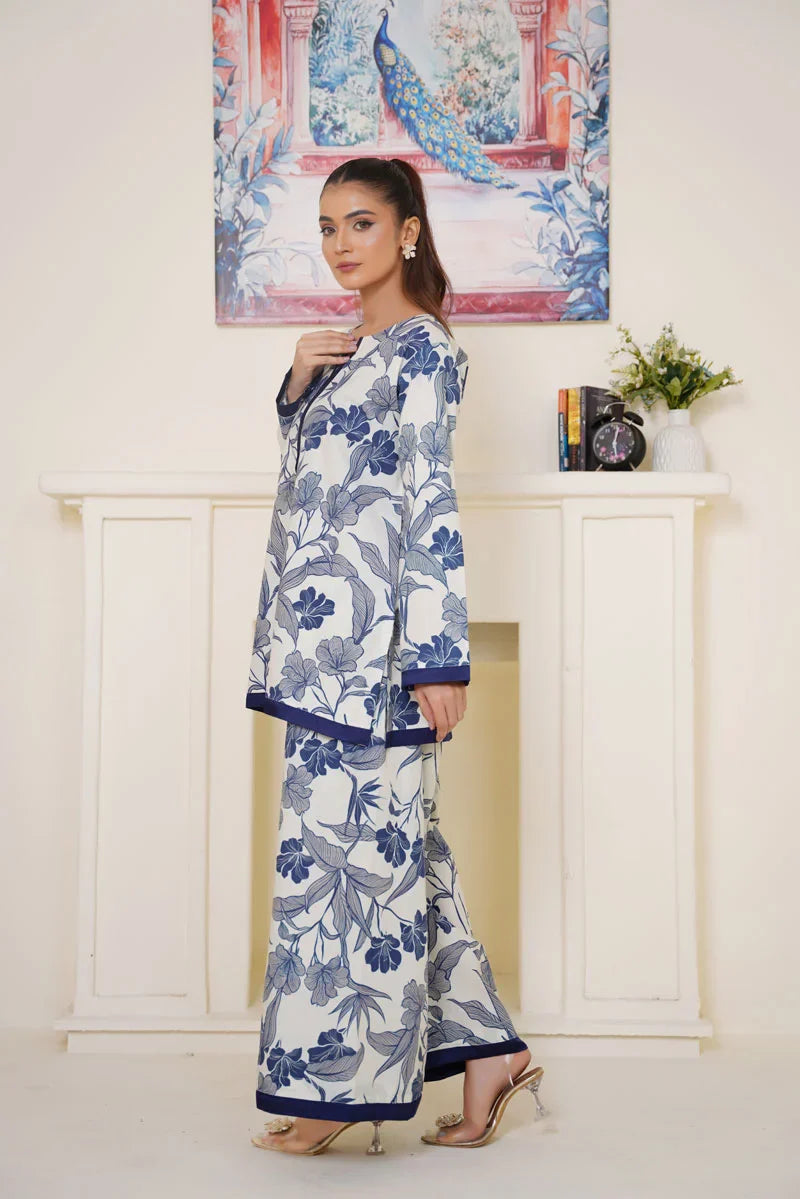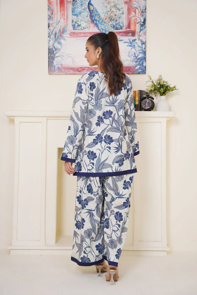Description Top: Printed stitched top in breathable lawn fabric Trouser: Matching printed wide-leg trouser with elasticized waistband Style: Coordinated comfort...