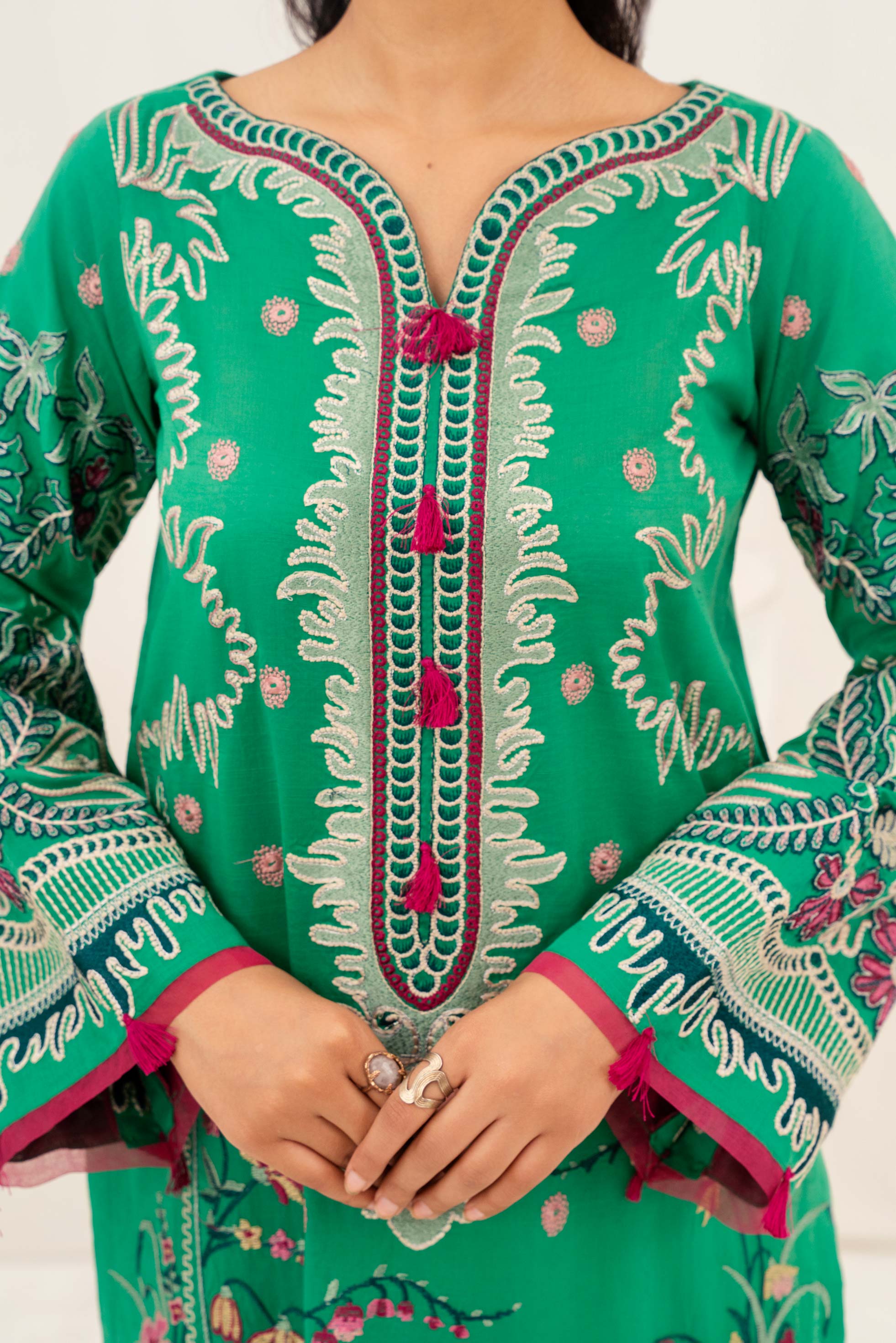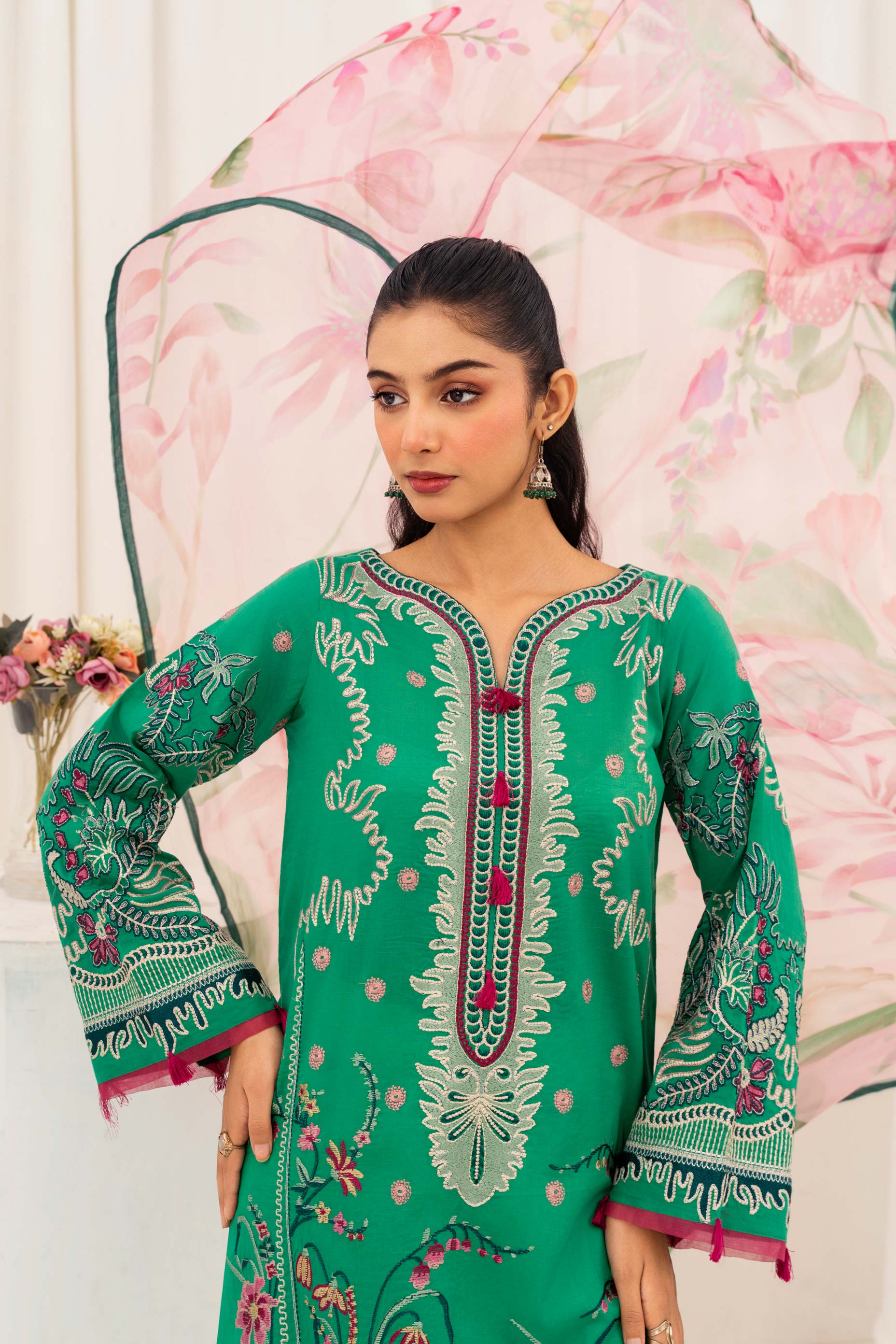 Embrace the essence of summer with our AY693 - Fern Fable 3Pc embroidered lawn suit. This exquisite ensemble features delicate embroidery on premium lawn fabric, perfect for staying cool and stylish during warm weather. The intricate fern-inspired design adds a touch of nature's elegance to this versatile three-piece set. Ideal for casual outings or special occasions, this breathable lawn suit combines traditional Pakistani craftsmanship with contemporary design elements for a timeless addition to your wardrobe.