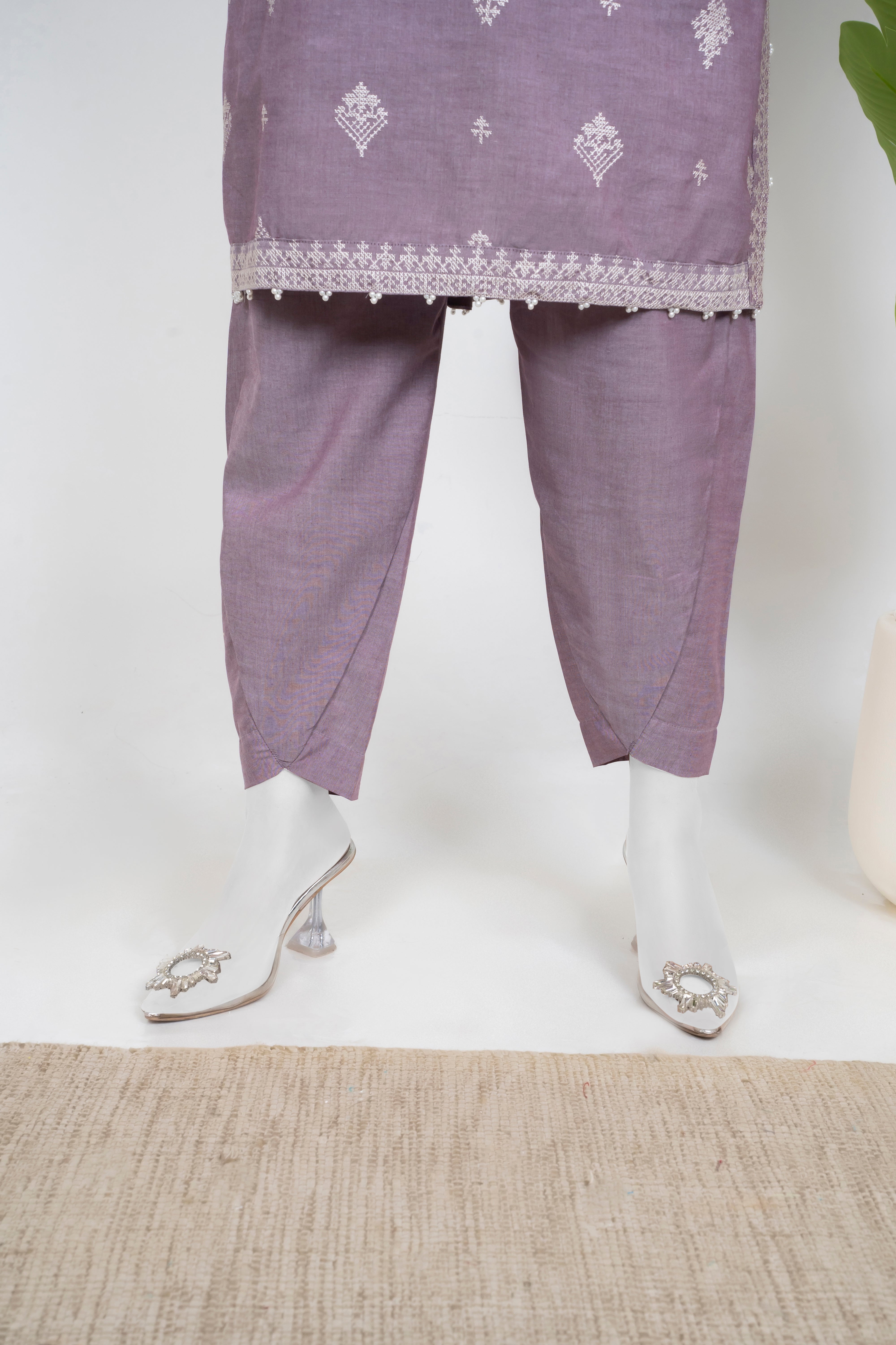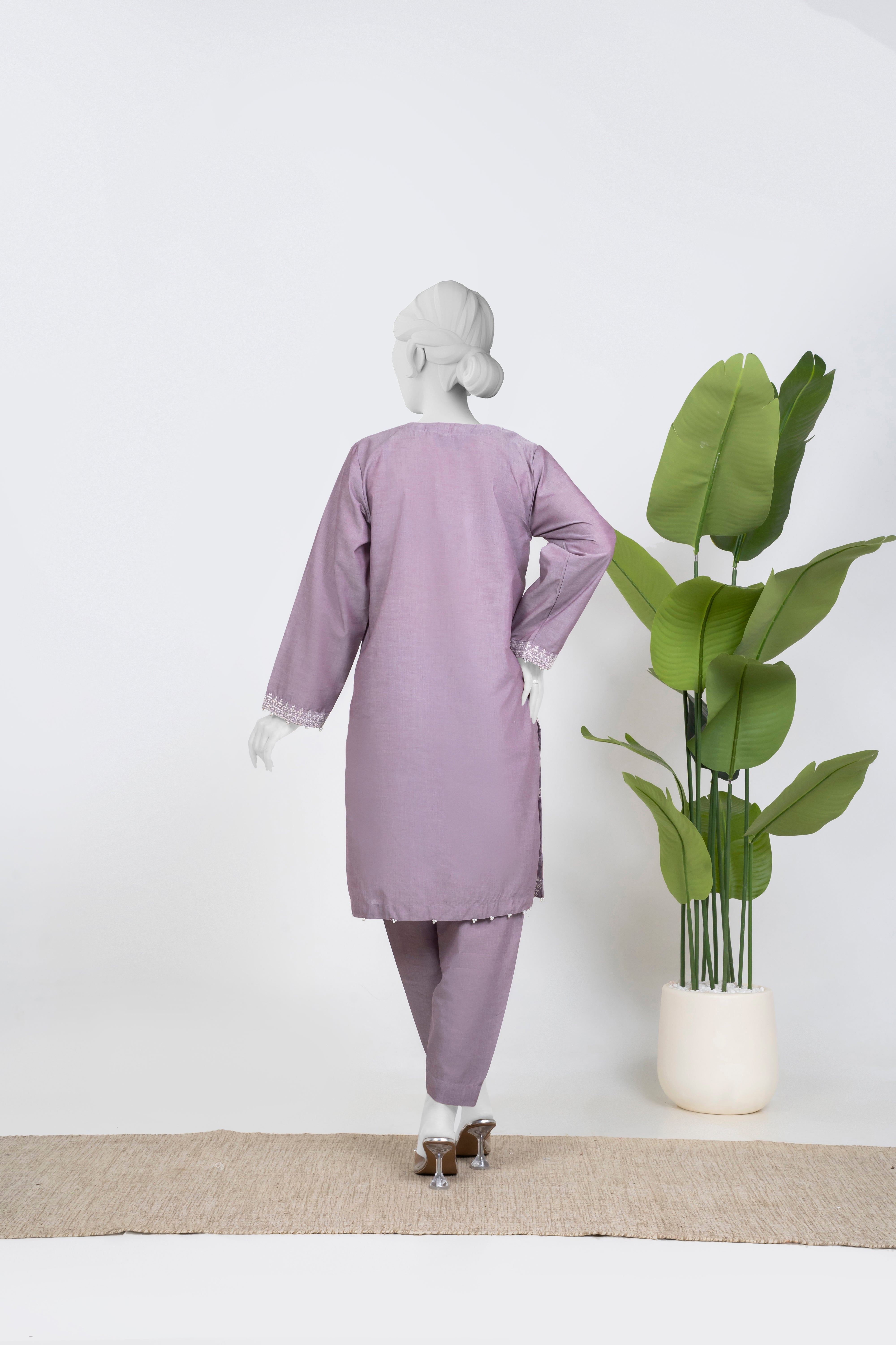 Embrace the Chambrey Winters 2025 collection with this elegant lilac 2-piece set featuring solid embroidery that adds refined texture and charm. Paired with tulip-shaped trousers, it offers a fresh and graceful silhouette perfect for stylish winter wear. This ensemble blends comfort and sophistication, making it an ideal choice for those seeking understated elegance with a modern touch.