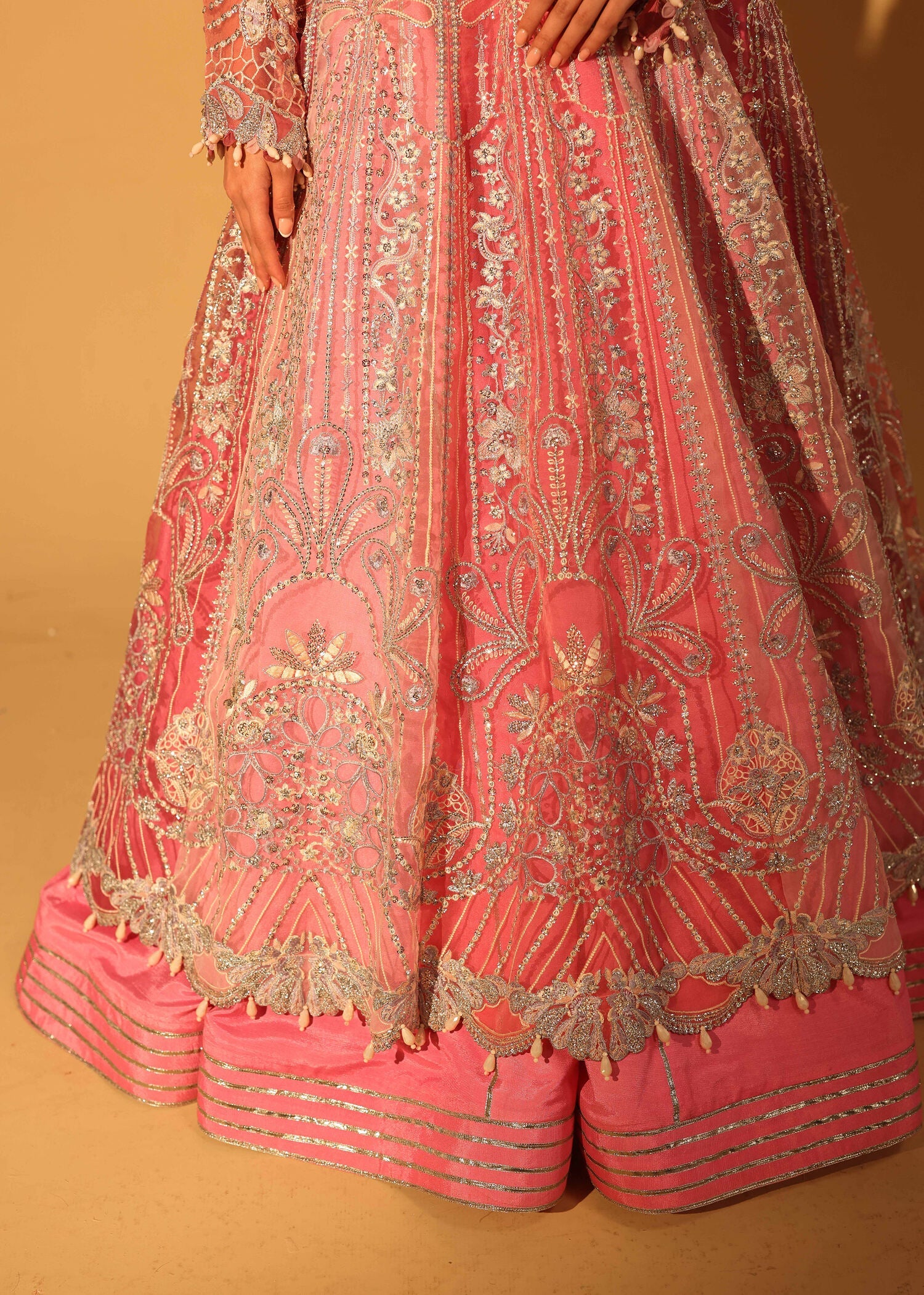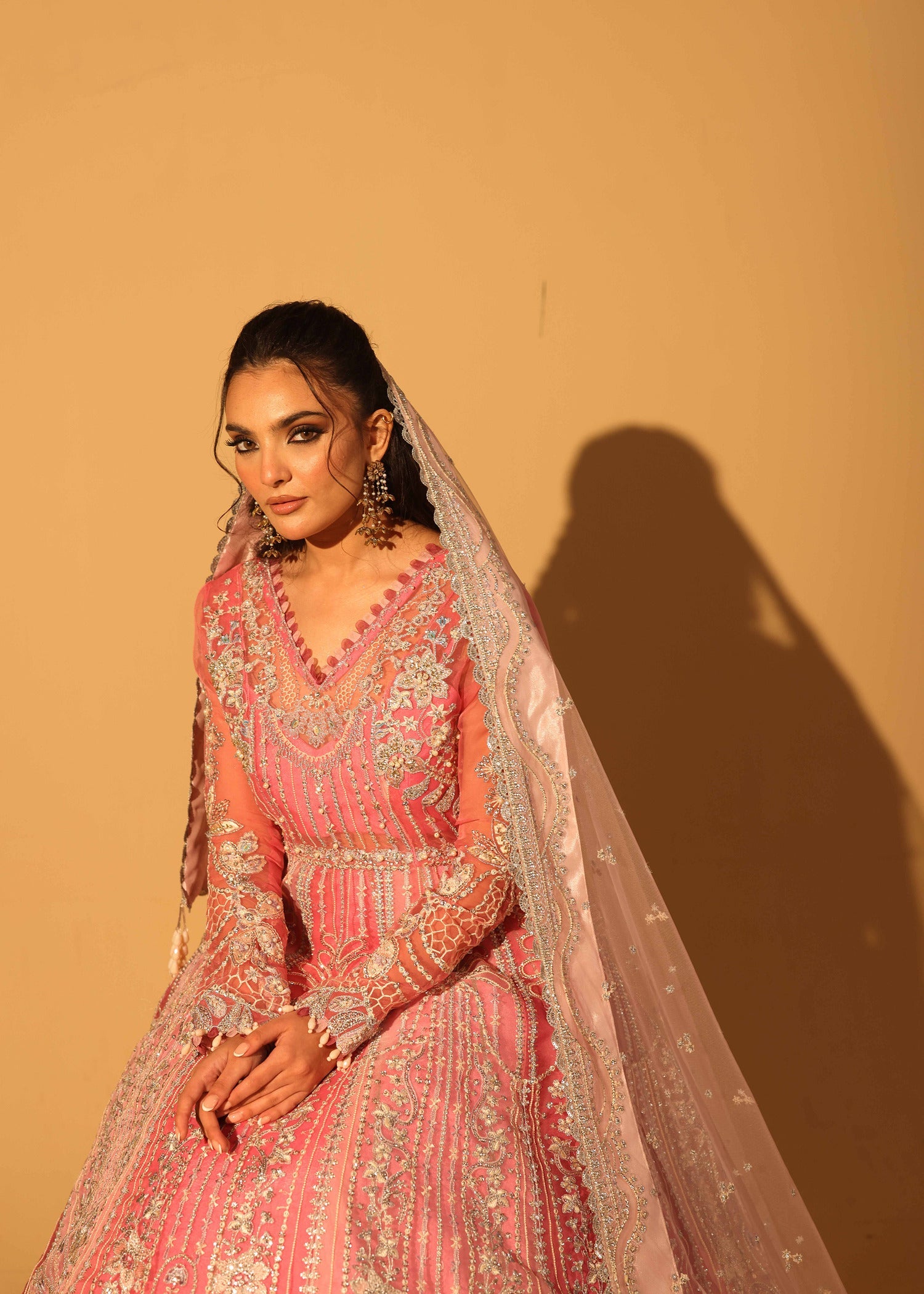 An embroidered net dupatta drapes effortlessly, adding a whisper-light finish that enhances the ensemble’s romantic appeal. Anchored by a refined raw silk trouser, Petal Bloom is designed for moments that call for grace, femininity, and elevated elegance.